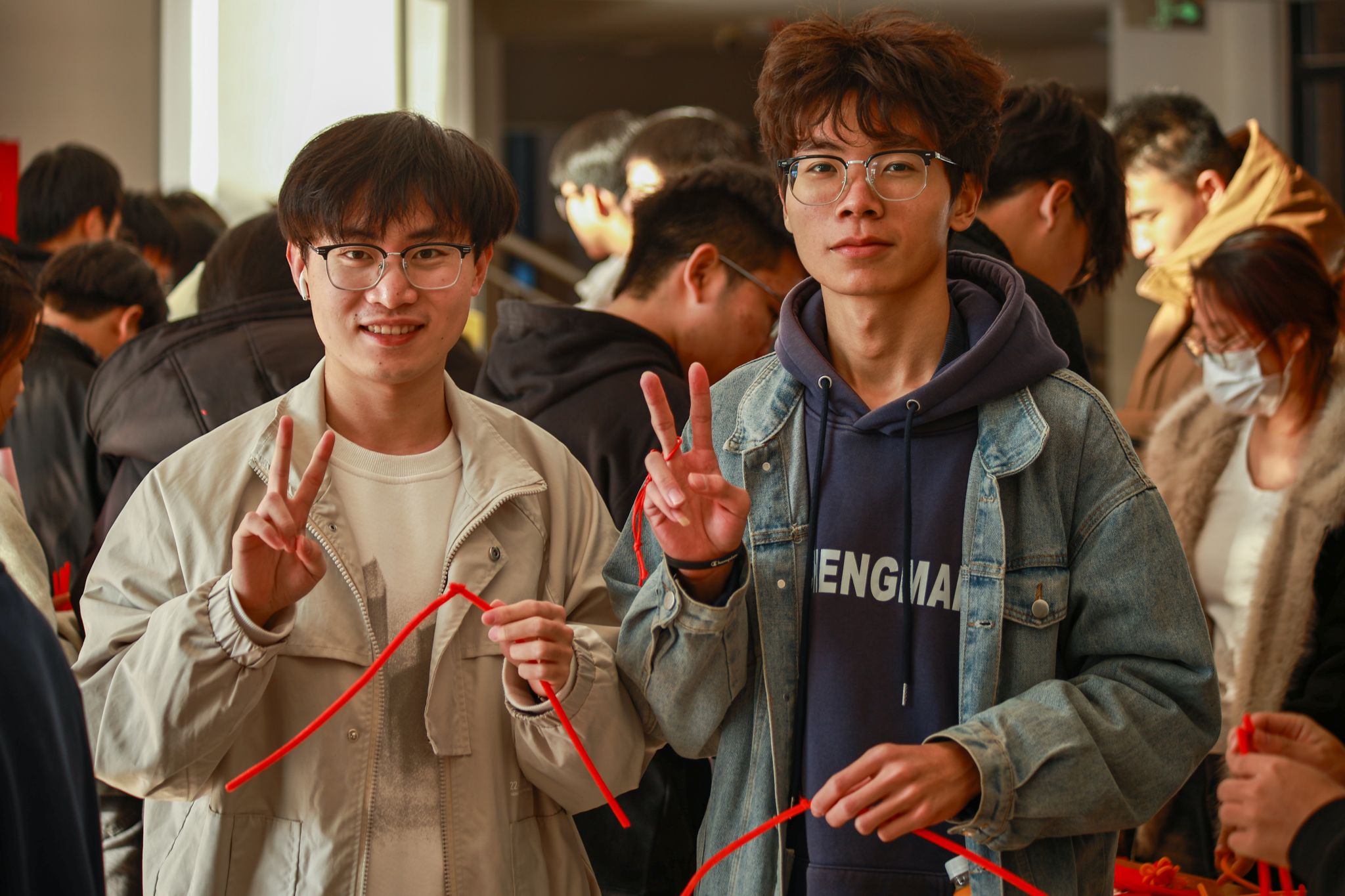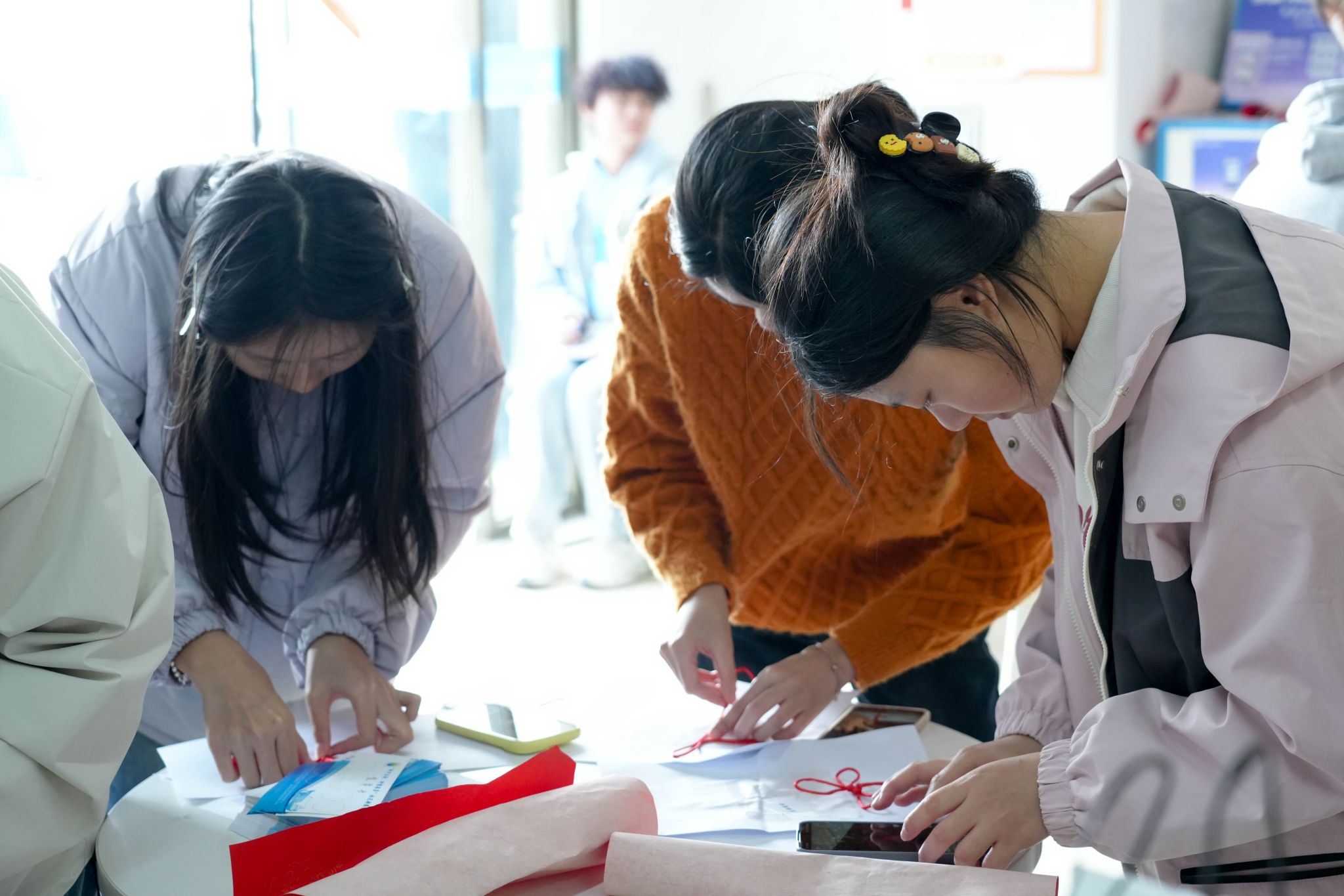 游园之旅第五站,同学们步入了西苑的“一站式”服务大厅,亲手编织中国结,感受中华文化深厚底蕴。