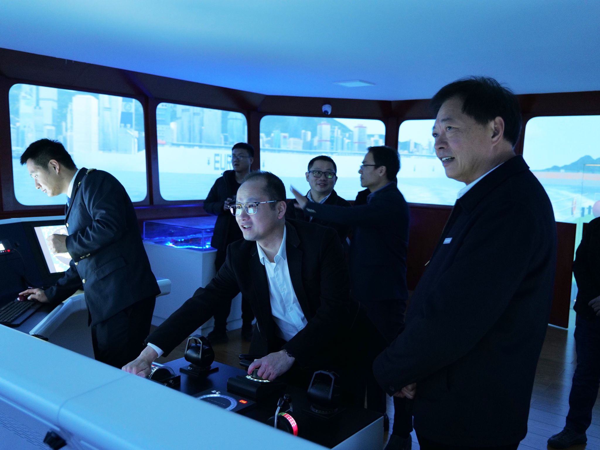 此外,张子牙副市长一行还参观了世界特种船舶展示厅、科大讯飞同声传译智慧教室、“育航号”实训船、东南校区建设项目、海权红馆、360度视景全任务船舶操纵模拟器等特色场馆及项目,深入了解学校海洋类专业教育办学现状。调研组一行对学校在教育创新上的努力和成果给予了高度评价。