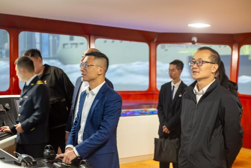 团省委一行参观了学校海丝文化墙、世界特种船舶展示厅、“育航号”实训船、海权红馆、360度视景全任务船舶操纵模拟器等特色场馆。在深入了解我校丰富的教育资源和独具匠心的教育特色后,调研组对我校的教育理念和实践给予了高度评价。