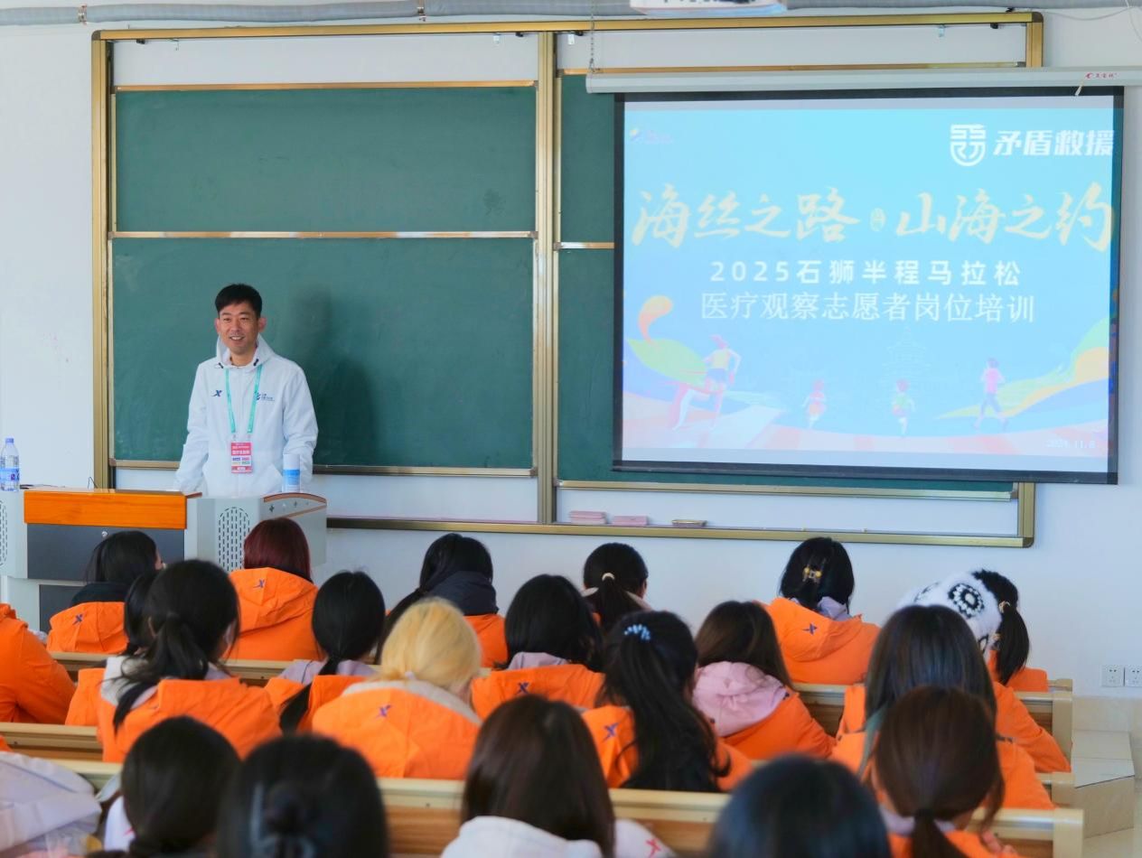 为了能在马拉松赛事中提供专业、优质的服务,我校志愿者们提前开启了全面且细致的赛前培训。专业的老师和经验丰富的志愿者前辈们,围绕赛事的各个环节、不同岗位的职责以及可能遇到的突发情况应对方法等内容,进行了深入浅出的讲解。从包裹寄存的规范流程,到医疗急救的基本技能,志愿者们都认真聆听、用心记录,还积极参与模拟演练,力求将每一个要点都牢牢掌握。通过这一系列扎实的培训,大家对即将承担的任务有了清晰的认识,也为后续保障工作的顺利开展奠定了坚实基础。