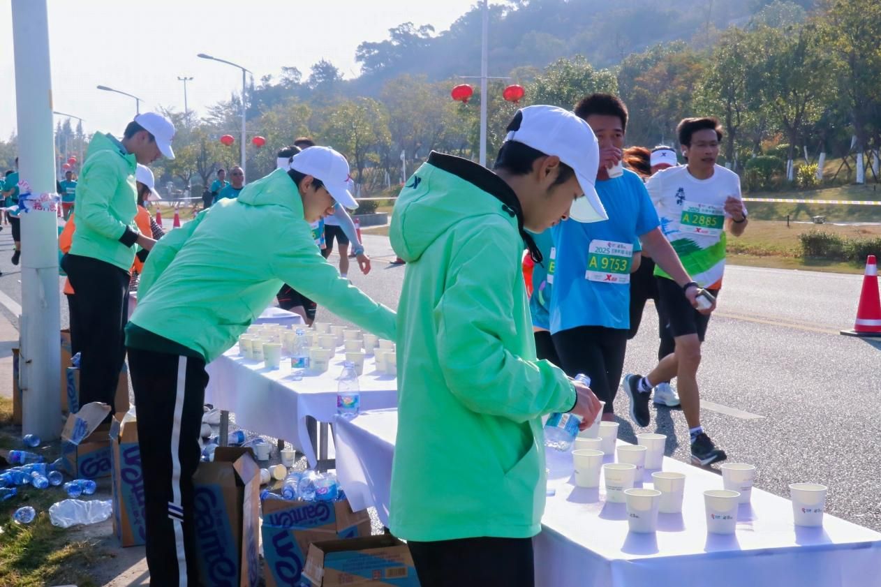 比赛当天,志愿者们忙碌、朝气的身影成为本次马拉松赛事一道亮丽的风景线。在起跑点,他们热情地为选手们提供包裹寄存服务,耐心解答疑问,让选手们可以安心开跑;奖牌分拣处的志愿者们眼明手快,把奖牌整理得井井有条,只待为冲线的选手送上荣耀一刻;负责赛道计时的志愿者们全神贯注,精准记录着每位选手的比赛用时;起终点拉伸区的志愿者们用专业手法为选手们缓解肌肉疲劳,减轻他们的身体不适;补给站里的志愿者们一刻不停,迅速又精准地为过往选手递上饮用水和补给品;医疗急救点的志愿者们时刻保持警惕,一旦有选手出现身体状况,便第一时间冲上前去提供帮助。他们用自己的行动,让整个赛事的运转顺畅有序,让每一位选手都能无后顾之忧地在赛道上追逐梦想。