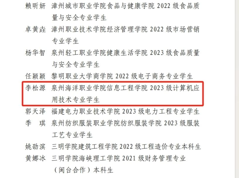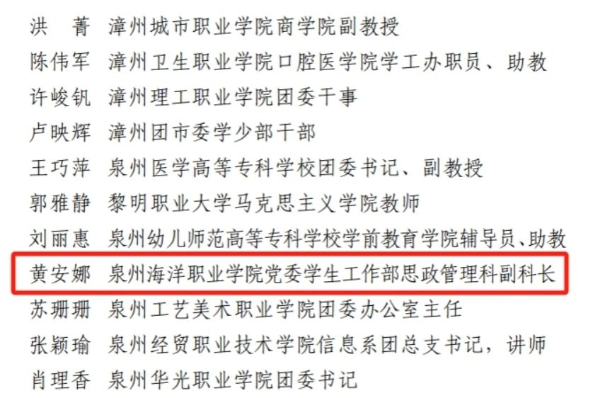 (新闻中心讯 校团委供稿 党委宣传部报道)近日,共青团福建省委对2024年全省大中专学生志愿者暑期“三下乡”社会实践活动中的优秀集体和个人进行了通报表彰,我校暑期社会实践工作荣获多项荣誉。其中,党委学生工作部思政管理科副科长黄安娜老师获评“省级先进工作者”,信息工程学院2023级计算机应用技术专业学生李松源获评“省级先进个人”称号。
