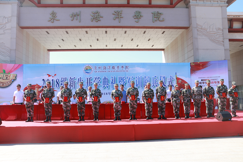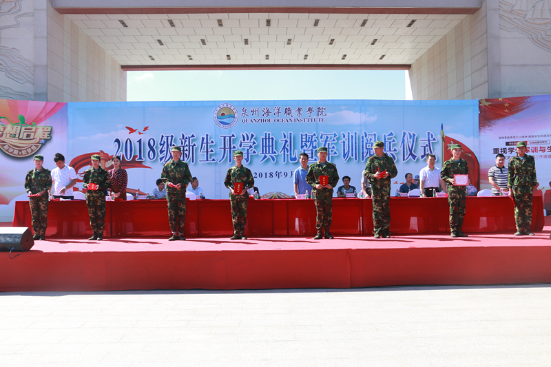 会上,学生处处长、学院武装部部长苏良城老师宣读《泉州海洋职业学院关于表彰2018级军训优秀教官、优秀中队、优秀标兵的决定》。李煜杰等15名教官被授予“优秀教官”荣誉称号,航海三中队等五个中队荣获“优秀中队”荣誉称号,李明轩等58名同学荣获“优秀标兵”荣誉称号。