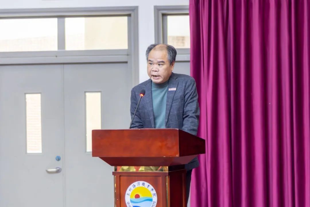 中泉集团船务分公司副总经理庄文显在发言中介绍了公司与泉州海洋职业学院建立的校企战略合作关系。他表示,该企业多年来接收了众多泉海优秀学子,其中不少人已晋升到关键岗位。他强调航海学科实践性强,学校和企业都十分重视卓越班的建设,中泉公司后续将安排外籍老师为同学们进行英语培训。最后,他寄语同学们珍惜学习机会,紧跟培养计划,设定明确目标,努力实现卓越。