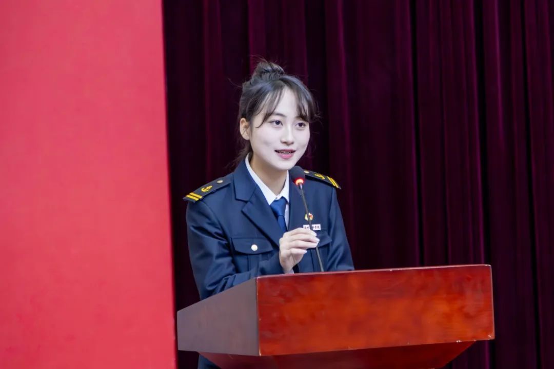 航海2305班的罗丽鹏作为学生代表发言。她分享了进入卓越班前的紧张与期待,以及进入卓越班后的深切感受,如班级里同学们高涨的学习热情和积极进取的态度。罗丽鹏承诺,作为卓越班的一员,会严格遵守校规校纪,按时完成各项作业。同时,她还分享了合理安排时间的方法,推荐了实用的背单词软件,讲解了提升口语的有效方式,并以首位穿越北冰洋的女船长为榜样激励大家,强调成功离不开知识的积累与良好的心态。