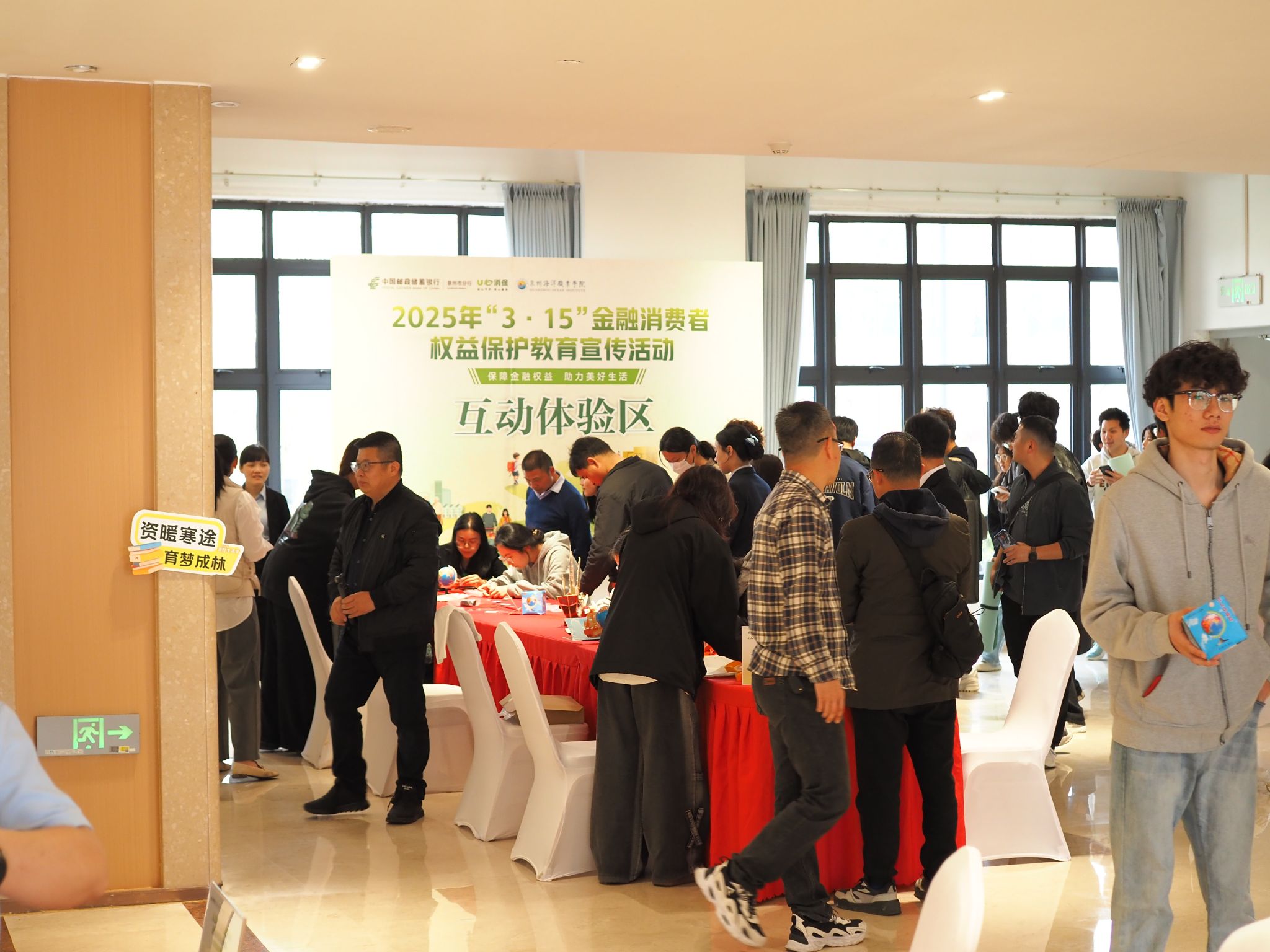 活动紧扣“保障金融权益,助力美好生活”宣传主题,形式多样、内容丰富。现场播放的消保公益短片,以生动的影像向师生们展示了金融风险与消费者权益保护的核心要点;在金融消费者八大权益教育宣传展区,专业人员耐心细致地为师生答疑解惑;“3・15”金融知识主题手抄报展区,学生创作成果成为宣传载体,激发了学生参与热情;游戏互动区则将金融知识与趣味挑战巧妙融合,学生踊跃参与答题闯关游戏,在欢乐中学习金融知识;此外,现场还组织了师生共同参与白帆布包创作,绘制“3・15”标语或漫画,以及制作冰箱贴等创意手工活动,让金融理念在动手实践中根植于心。特别值得一提的是,泉州海洋职业学院大学生语言协会特别策划了“3・15”主题话剧表演,以栩栩如生的剧情演绎了金融消费场景,寓教于乐地将金融知识进行传播宣教。