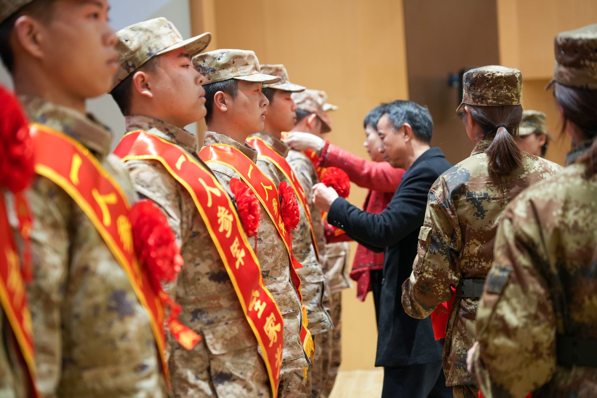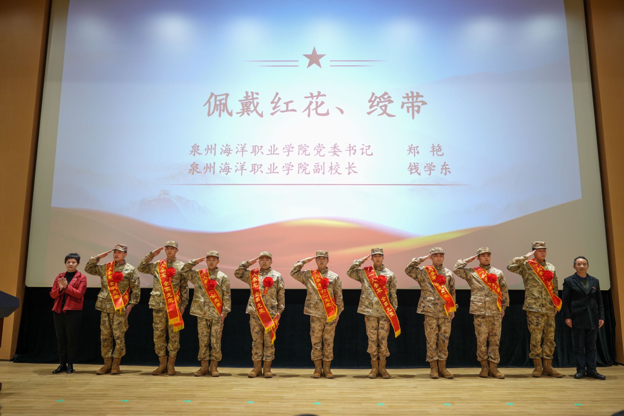 党委书记郑艳为全体准军人佩戴绶带