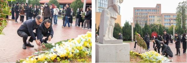 随后,党员们怀着崇敬之情走进李子芳纪念馆。在“少年归侨”到“上饶炼狱”八个主题展区,大家通过一组组照片和烈士遗物,系统回顾了李子芳烈士从海外赤子到革命志士、直至英勇就义的壮烈人生历程。在庄严肃穆的烈士雕像前,全体党员整齐列队并敬献鲜花,以崇高的礼节表达对革命先烈的深切缅怀和无限追思。通过实地学习,党员们深切感受到革命先辈用鲜血铸就的精神丰碑,一致表示要传承红色基因,赓续精神血脉,将先烈遗志转化为奋进新时代的磅礴力量。