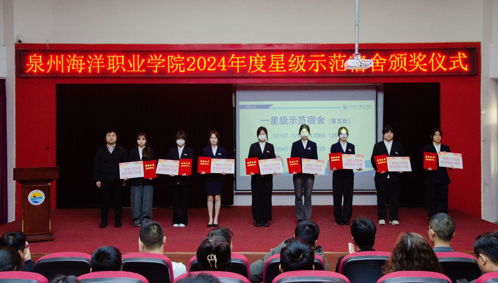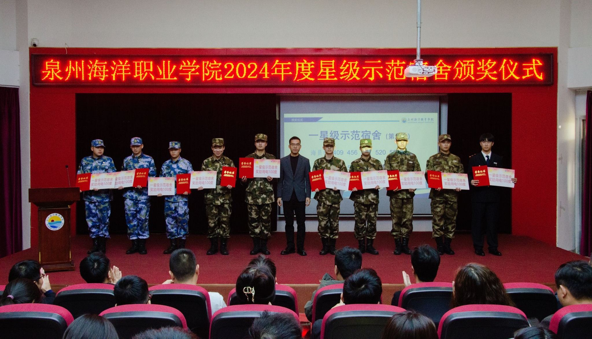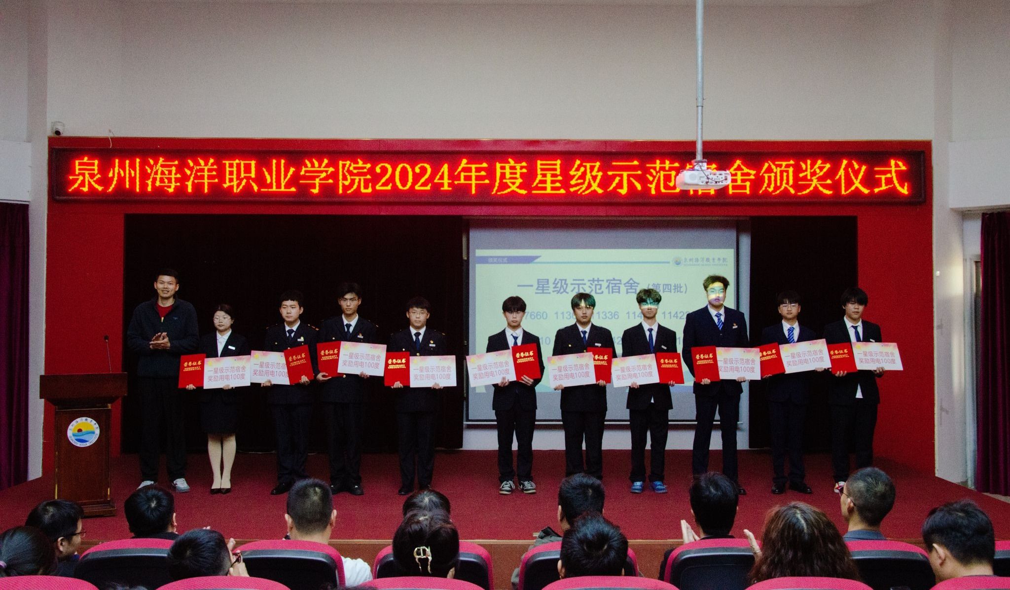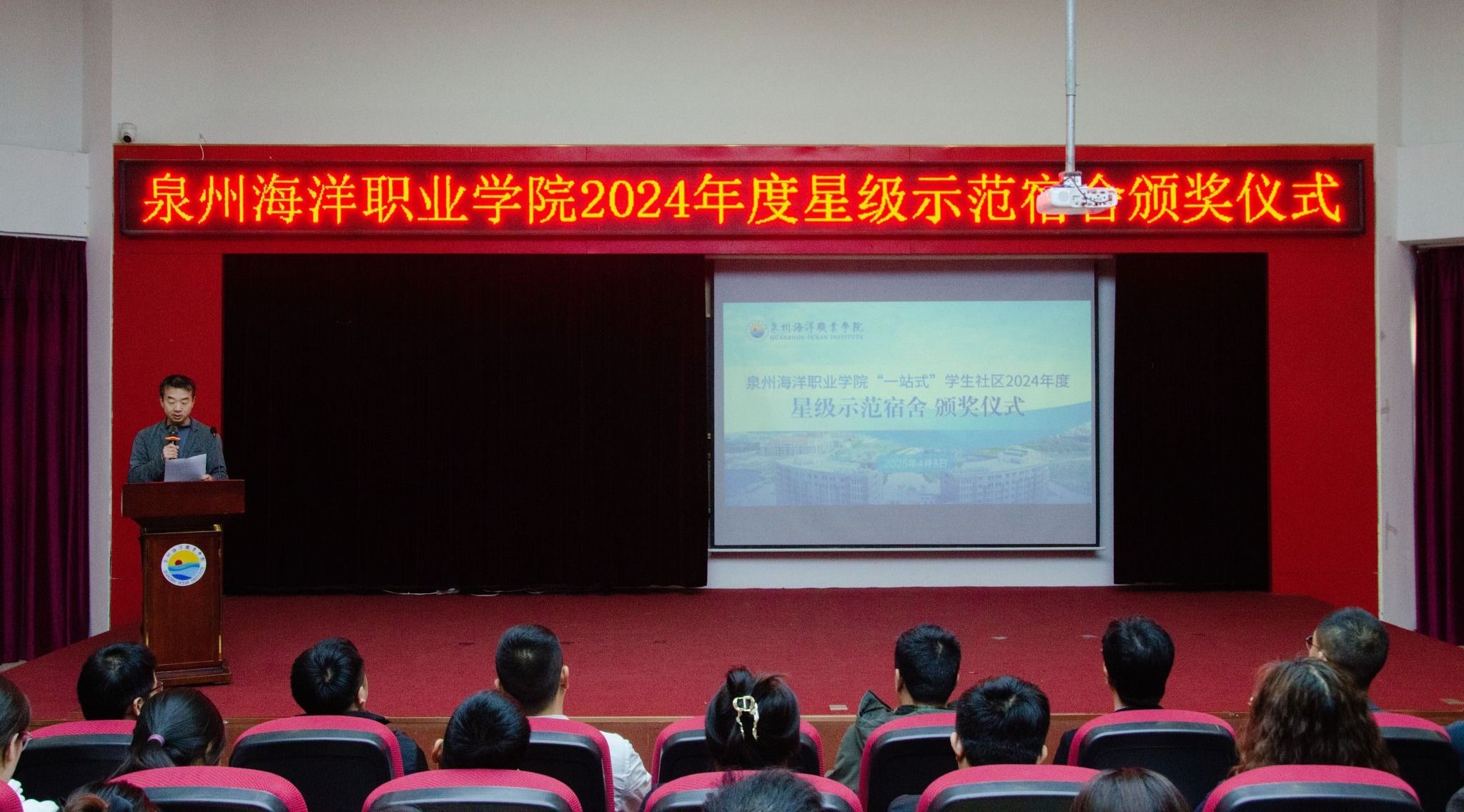 (新闻中心讯 党委学工部供稿 党委宣传部报道)以文明促成长,以标杆树新风,以示范促建设。4月3日,学校举行2024年度“一站式”学生社区安全文明宿舍暨“星级示范宿舍”颁奖仪式。党委学工部、后勤处和各二级学院相关负责人与师生代表齐聚一堂,共同见证68间星级宿舍的荣誉时刻。本次活动旨在深化“三全育人”综合改革,推进宿舍标准化建设,营造安全、文明、和谐的校园生活环境。
