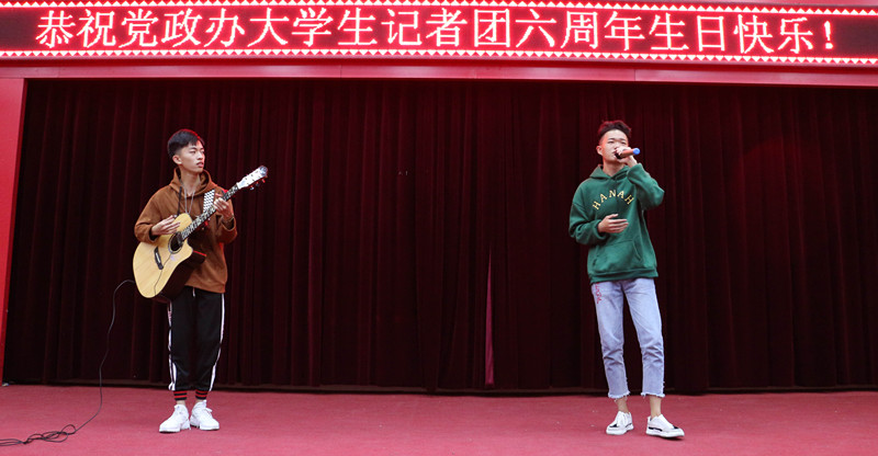宣誓结束后,活动节目在歌唱与舞蹈的节目中展开。台下的观众喝着奶茶、吃着美味的水果、寿司等美食欣赏节目。最后,在一曲生日歌中,生日蛋糕被推上舞台,在现场嘉宾的见证下切下蛋糕,在欢声笑语中,记者团所有成员及现场嘉宾合影留恋,记者团六周年庆圆满落幕。