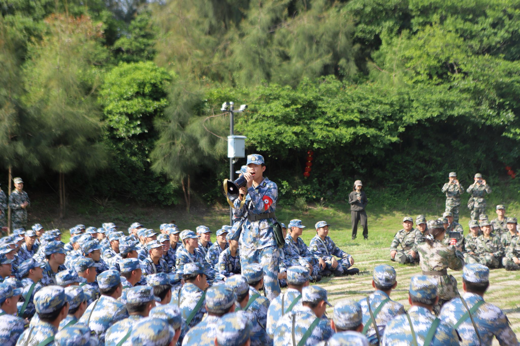 军事拓展活动中,各大队以中队为单位进行口令传递,尽管过程中困难重重,但队员们相互鼓励,最终顺利完成任务。拉歌比赛环节,《强军战歌》《团结就是力量》等歌曲响彻海天之间,各大队你追我赶,用嘹亮的歌声展现青春风采。