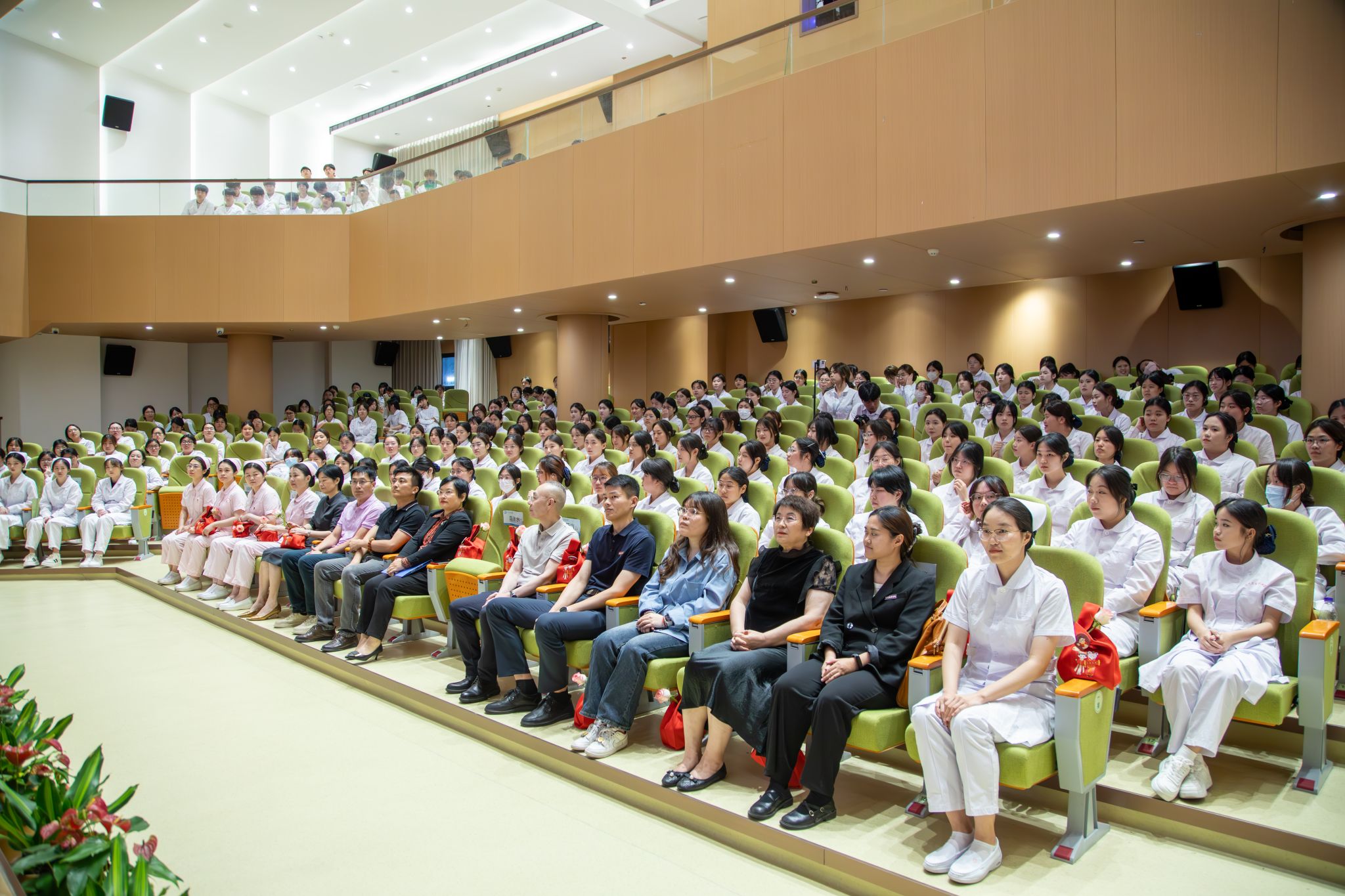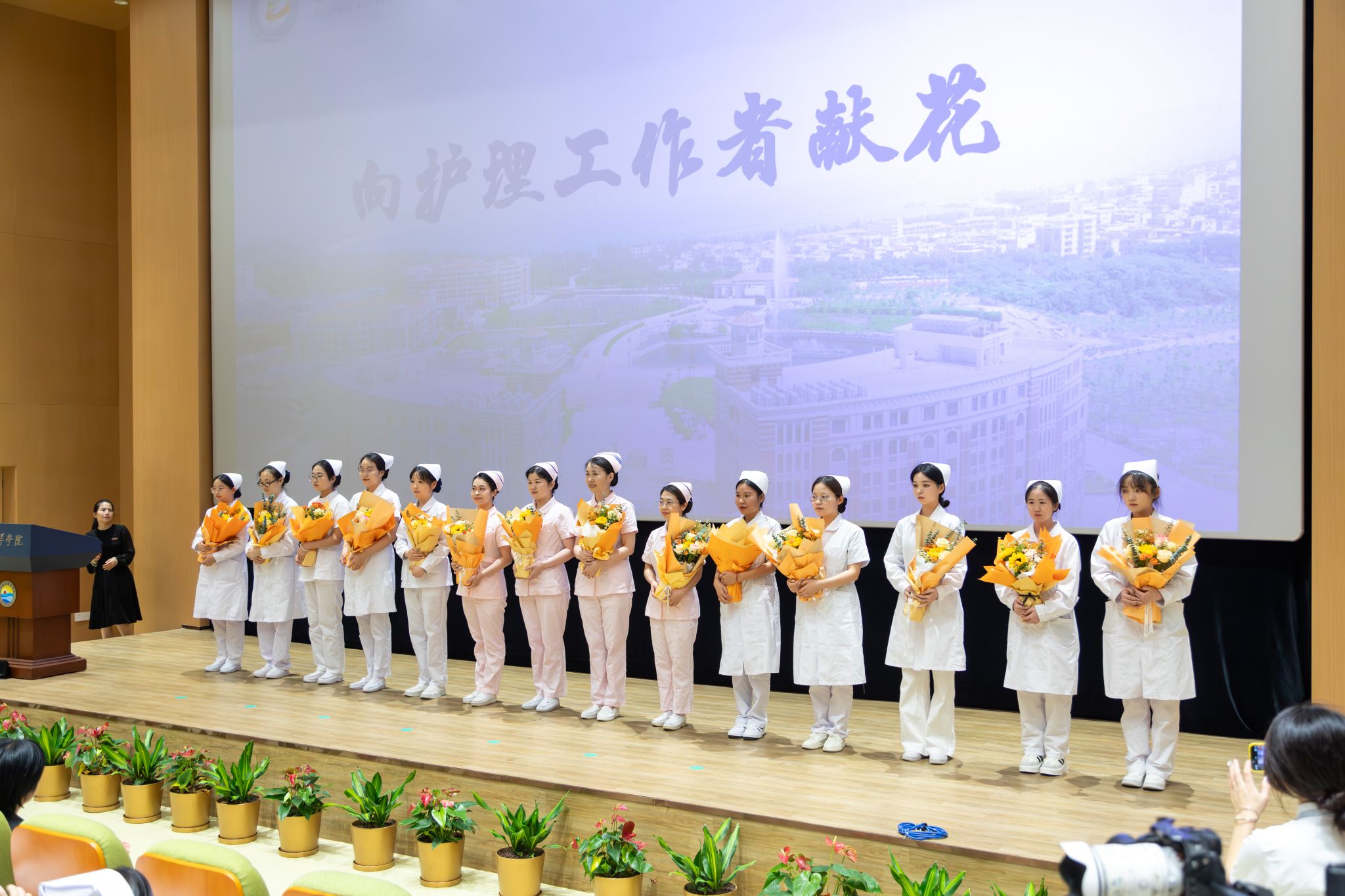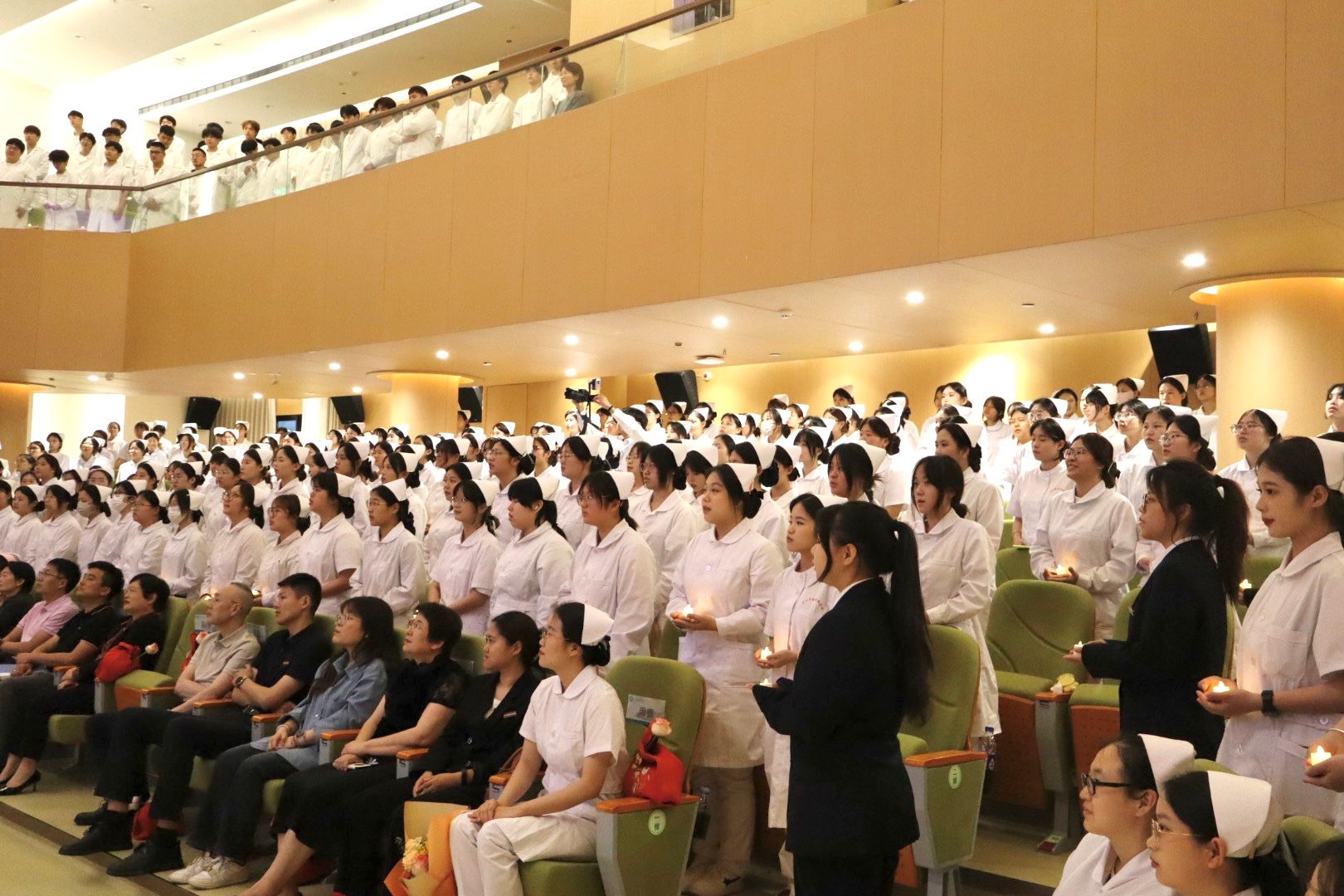 石狮市妇幼保健院护理部副主任黄雪媚等来宾及教师代表为2023级500多名护理学子授帽传烛。