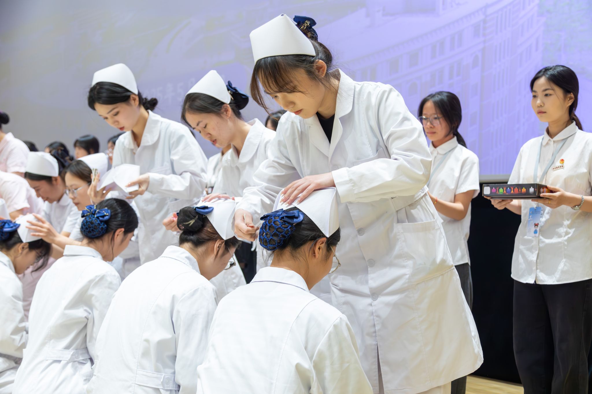 授帽仪式,如熠熠灯塔,照亮护理学子的职业征程。相信护理专业的同学们将以此次仪式为新起点,以燕帽传承责任,以专业诠释匠心,展现坚定信仰和使命担当。
