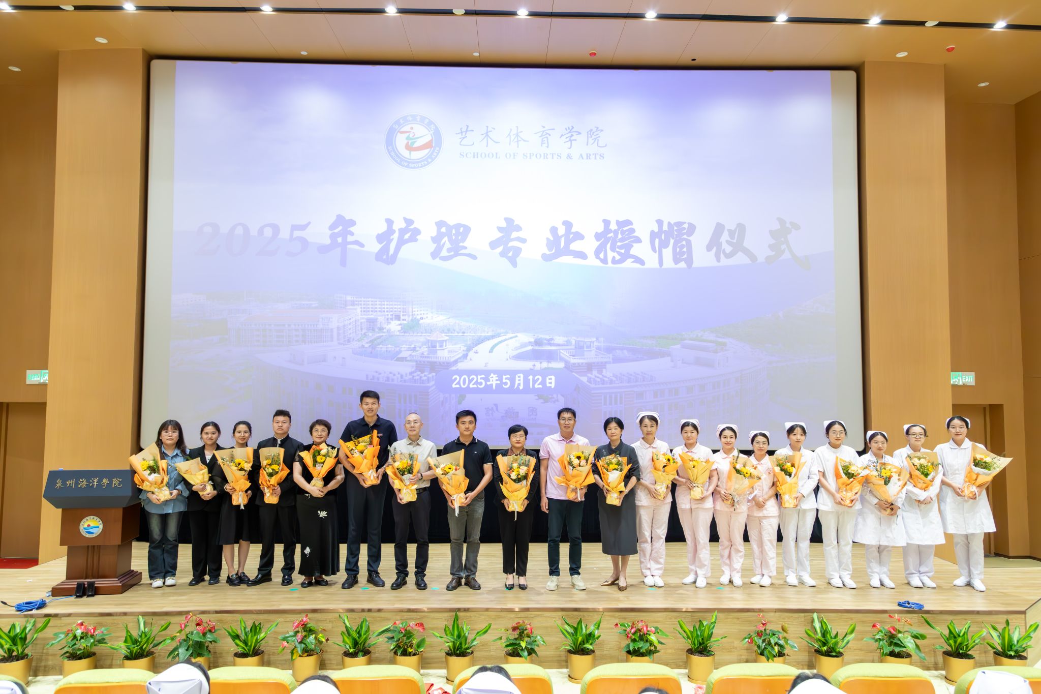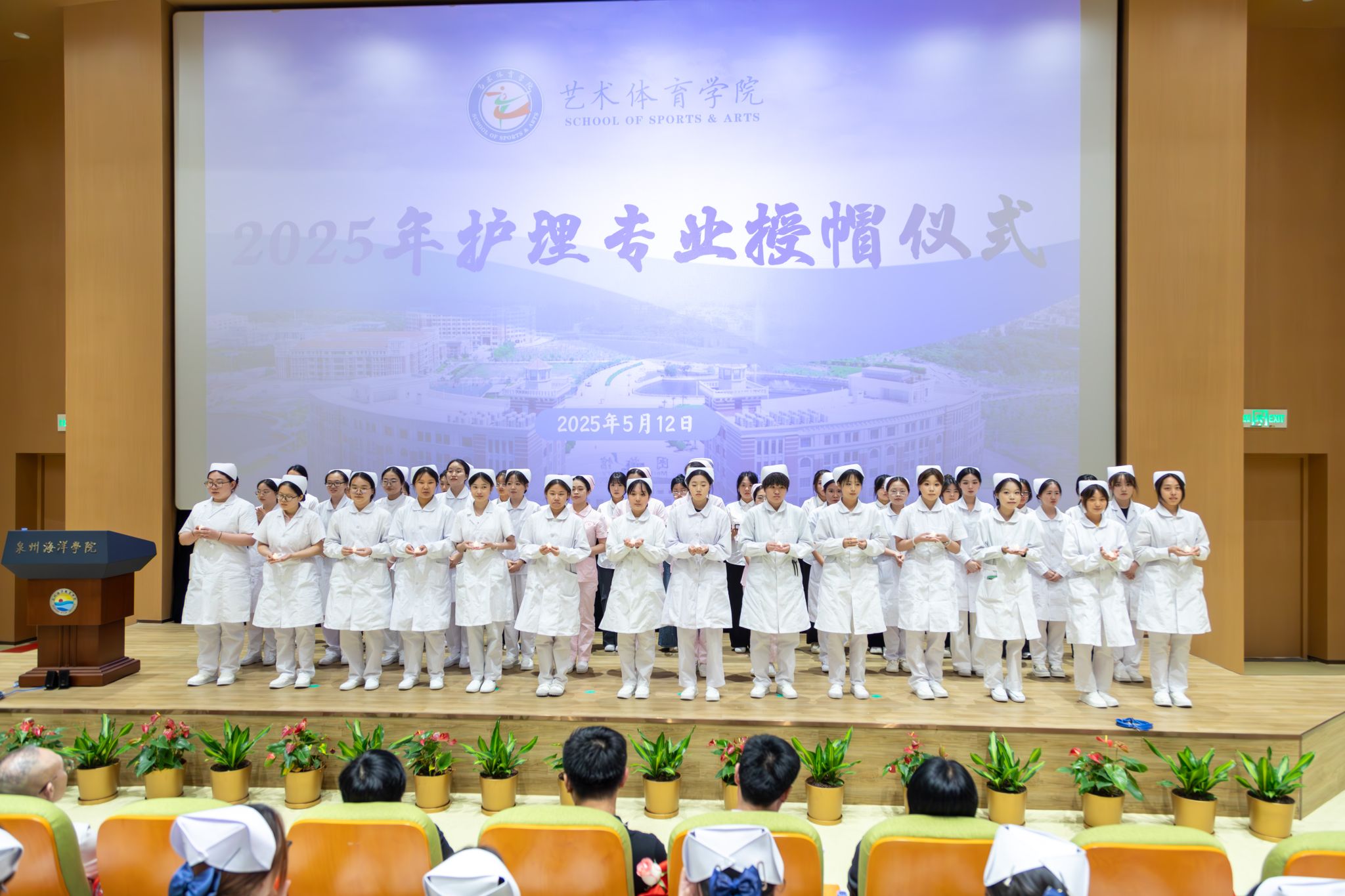 (新闻中心讯 艺术体育学院供稿 党委宣传部报道)为纪念第114个“5·12”国际护士节,5月12日晚,我校于图书馆学术报告厅举办2025年护理专业授帽仪式。石狮市总医院党委委员、石狮市妇幼保健院院长倪孝渊携医护团队应邀出席。我校党委委员、常务副校长唐学学,艺术体育学院顾问罗刚及学院相关负责人、2023级护理专业全体师生参加仪式。