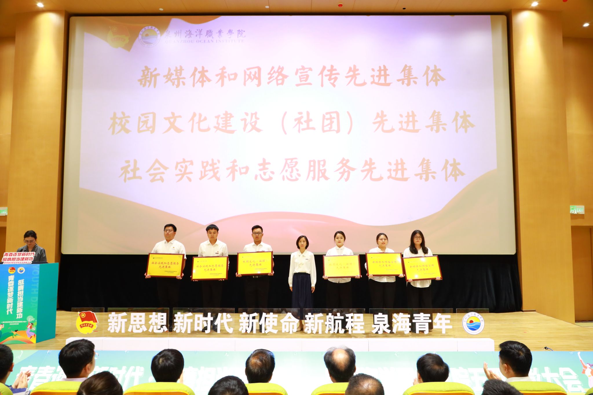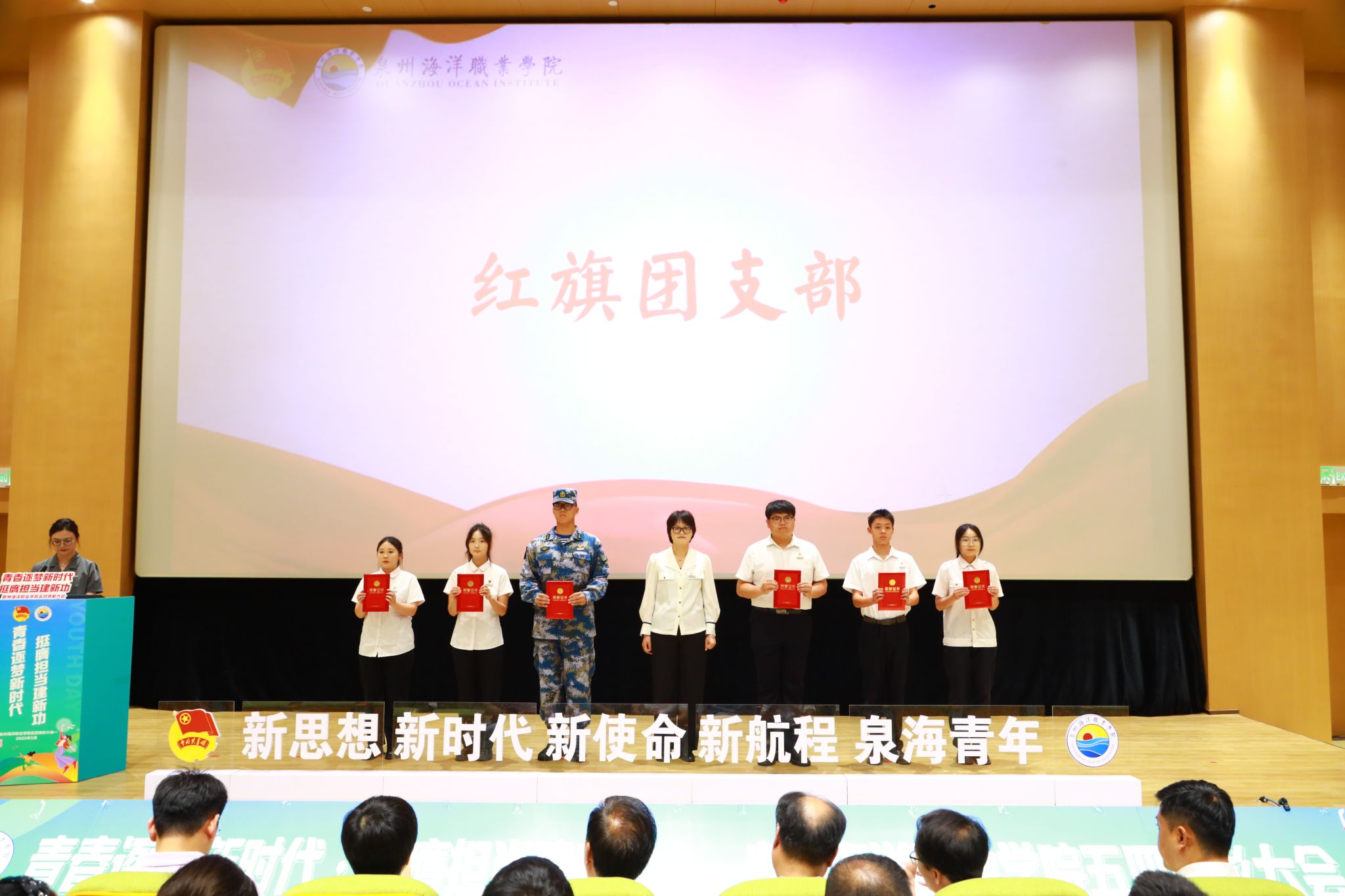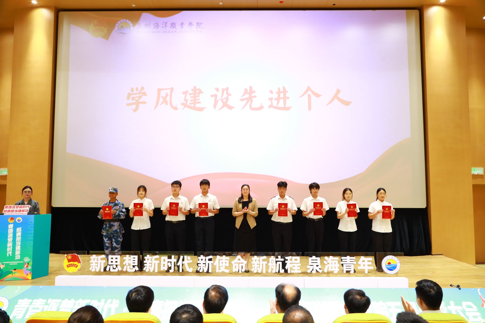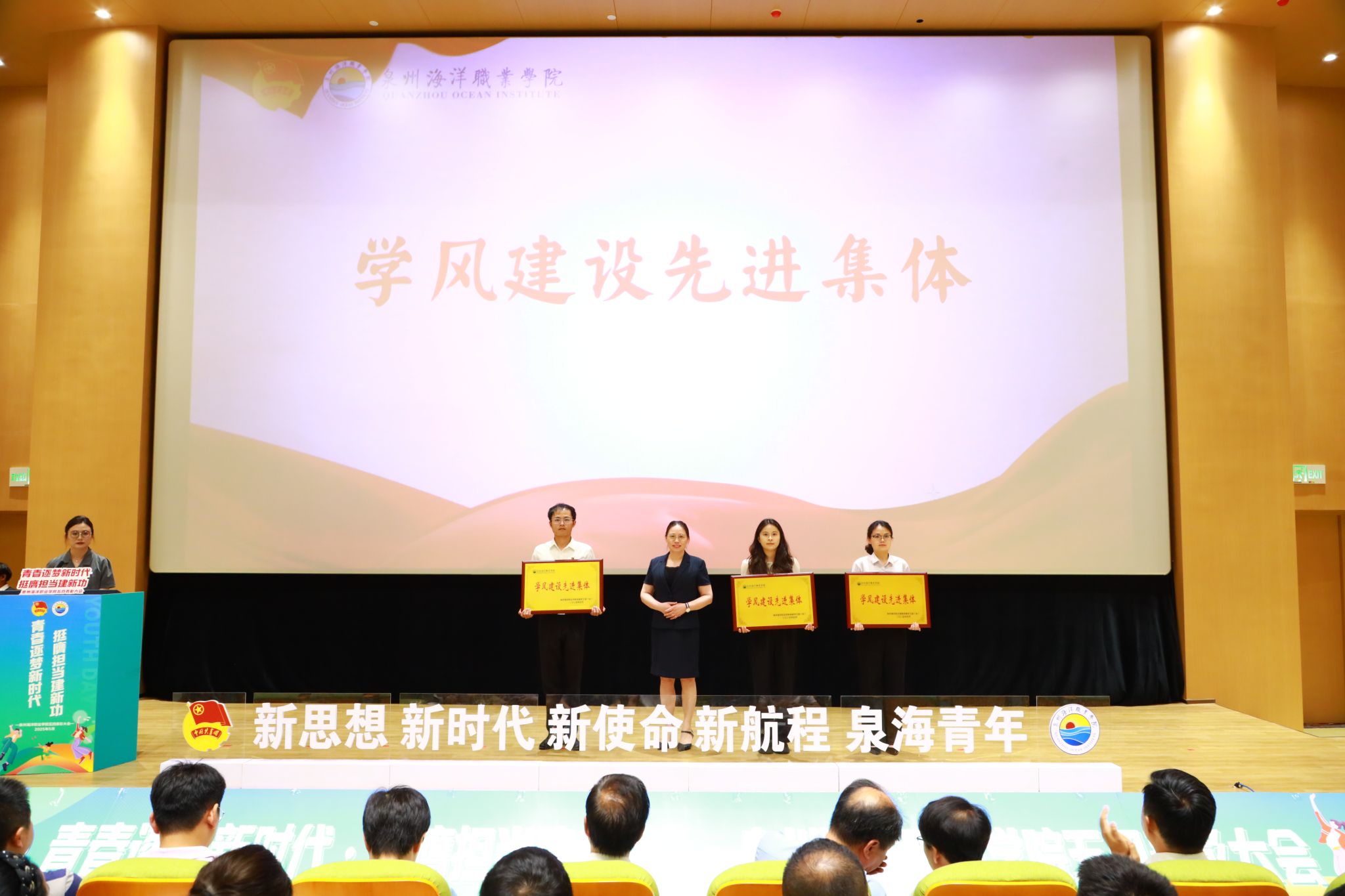 (新闻中心讯 校团委供稿 党委宣传部报道)五月的风,青春洋溢。五四精神,闪耀校园。为学习贯彻习近平总书记关于青年工作的重要思想,弘扬五四精神,激励新时代青年学子勇担使命,5月21日下午,泉州海洋职业学院纪念五四运动106周年表彰大会暨“引航”辅导员工作室成立仪式在学术报告厅隆重举行。学校领导,党政部门负责人,各二级学院院长、各党总支(直属党支部)书记、团委(团工委)书记,学工系统全体成员以及各级团学青年代表、家长代表共同见证了这一荣耀时刻。