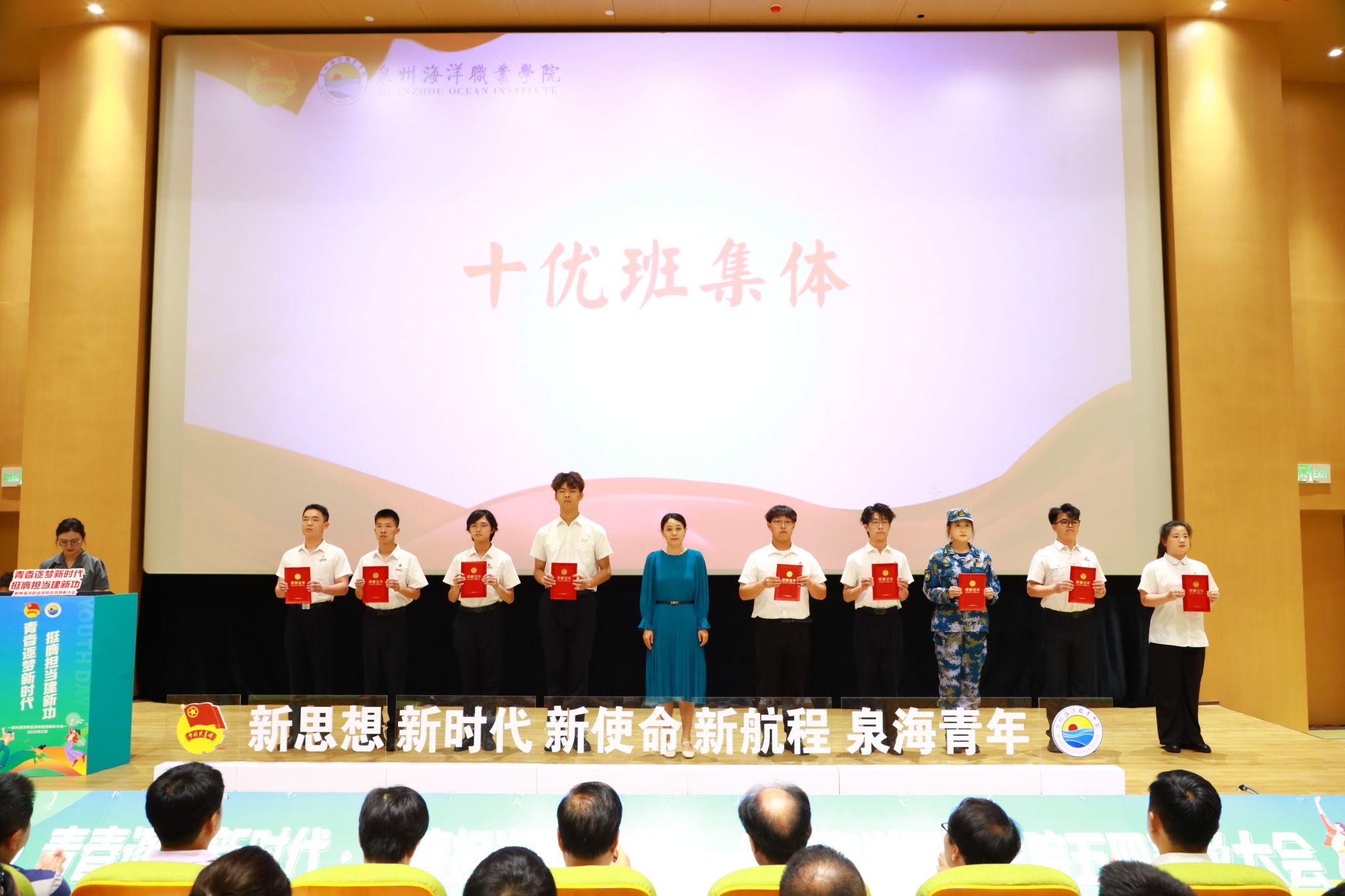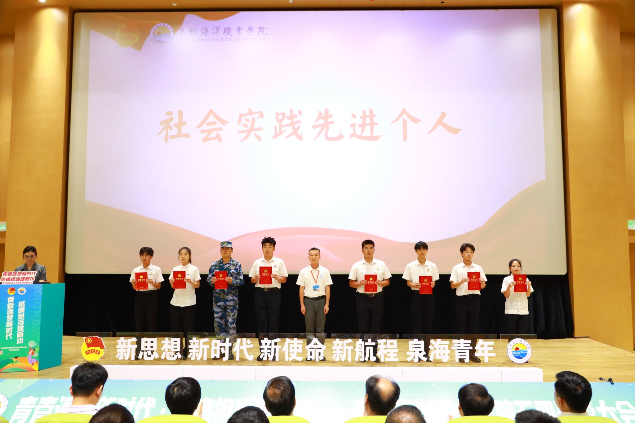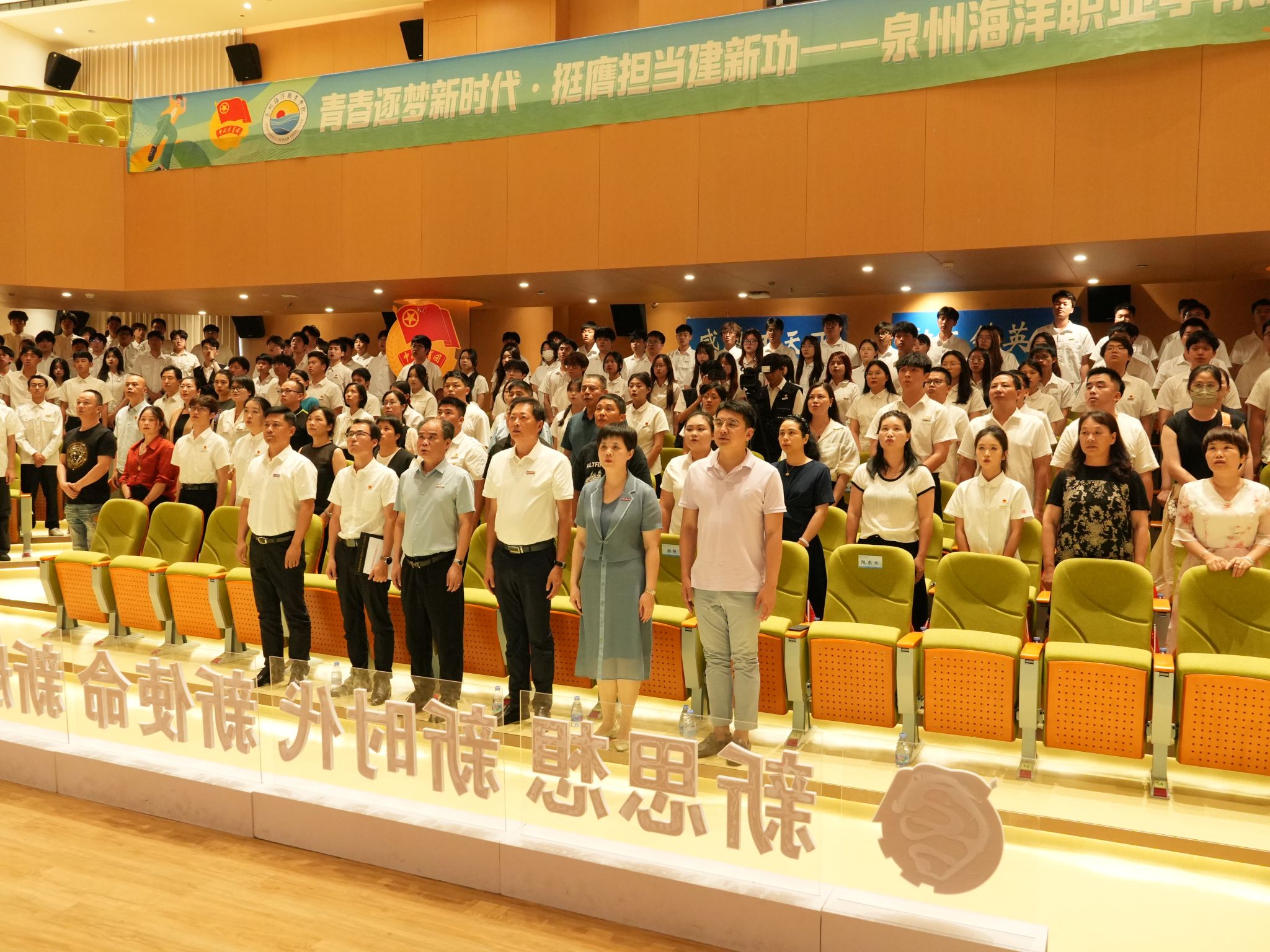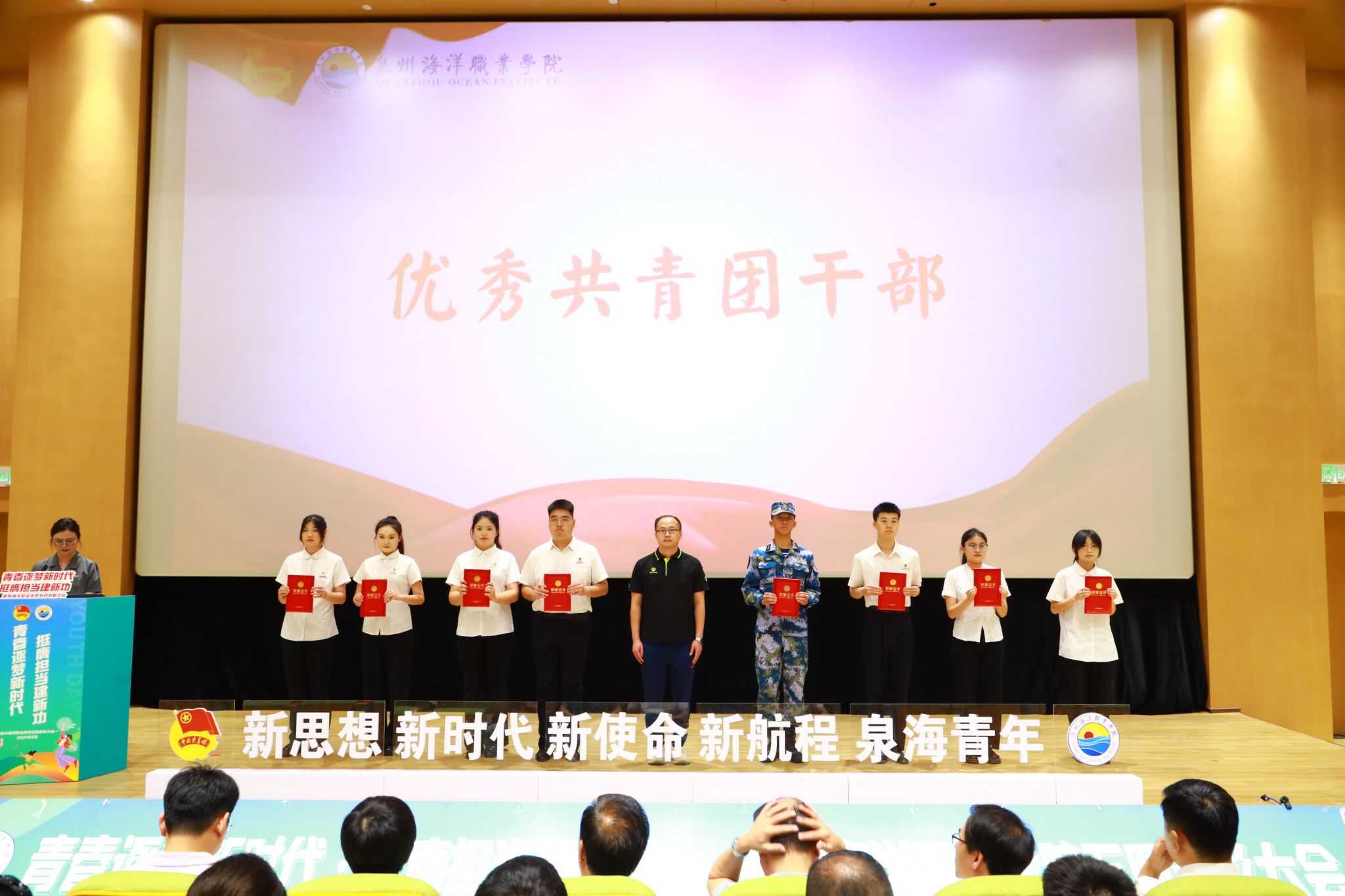 (新闻中心讯 校团委供稿 党委宣传部报道)五月的风,青春洋溢。五四精神,闪耀校园。为学习贯彻习近平总书记关于青年工作的重要思想,弘扬五四精神,激励新时代青年学子勇担使命,5月21日下午,泉州海洋职业学院纪念五四运动106周年表彰大会暨“引航”辅导员工作室成立仪式在学术报告厅隆重举行。学校领导,党政部门负责人,各二级学院院长、各党总支(直属党支部)书记、团委(团工委)书记,学工系统全体成员以及各级团学青年代表、家长代表共同见证了这一荣耀时刻。