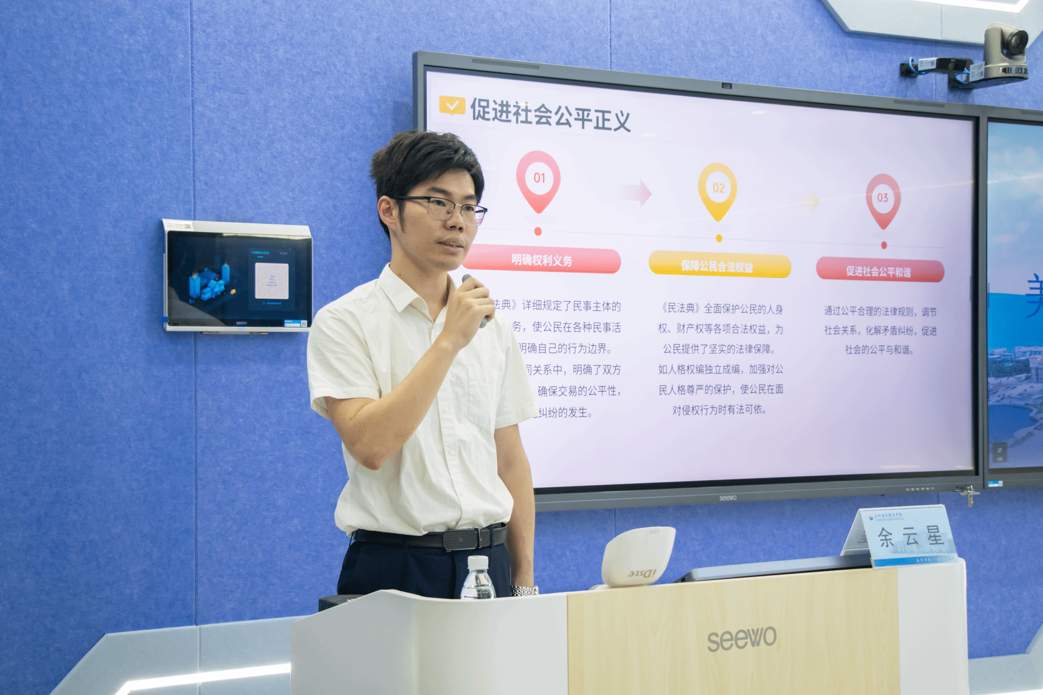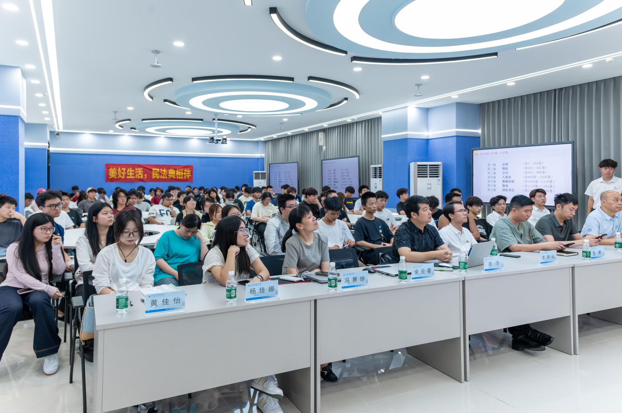 福建坚韧律师事务所余云星律师随之带来“美好生活,民法典相伴”普法知识讲座。分享中,余律师以大学生常见法律场景为切入点,用生动案例解析法条内涵,让抽象的法律条文变得通俗易懂。讲座中,余律师特别强调:“民法典不仅是保护自身权益的‘武器’,更是规范行为的‘指南针’。”