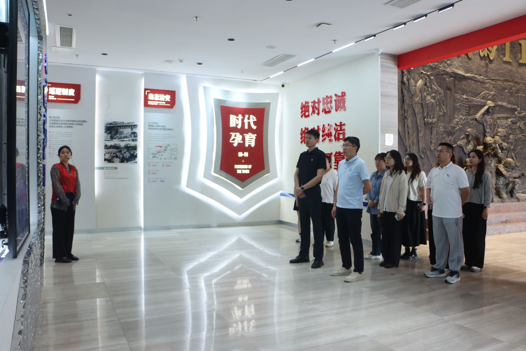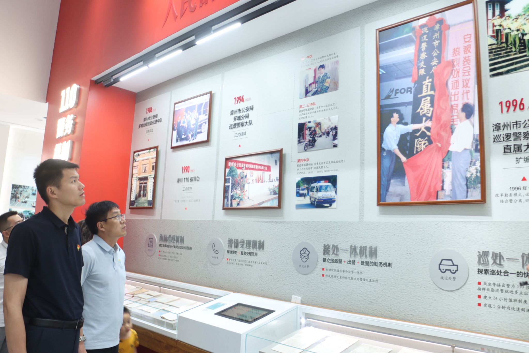 “漳州110”事迹展览馆内,快速出警的反应机制和设施、展柜中泛黄的出警记录、满墙的荣誉锦旗,生动展现了“漳州110”从诞生到成为全国公安标杆的鲜活实践历程。师生党员们不时驻足凝视,认真聆听关于“漳州110”发展史、奋斗史和荣誉史的介绍,学习其为民服务、严明纪律、勤政务实的楷模精神。