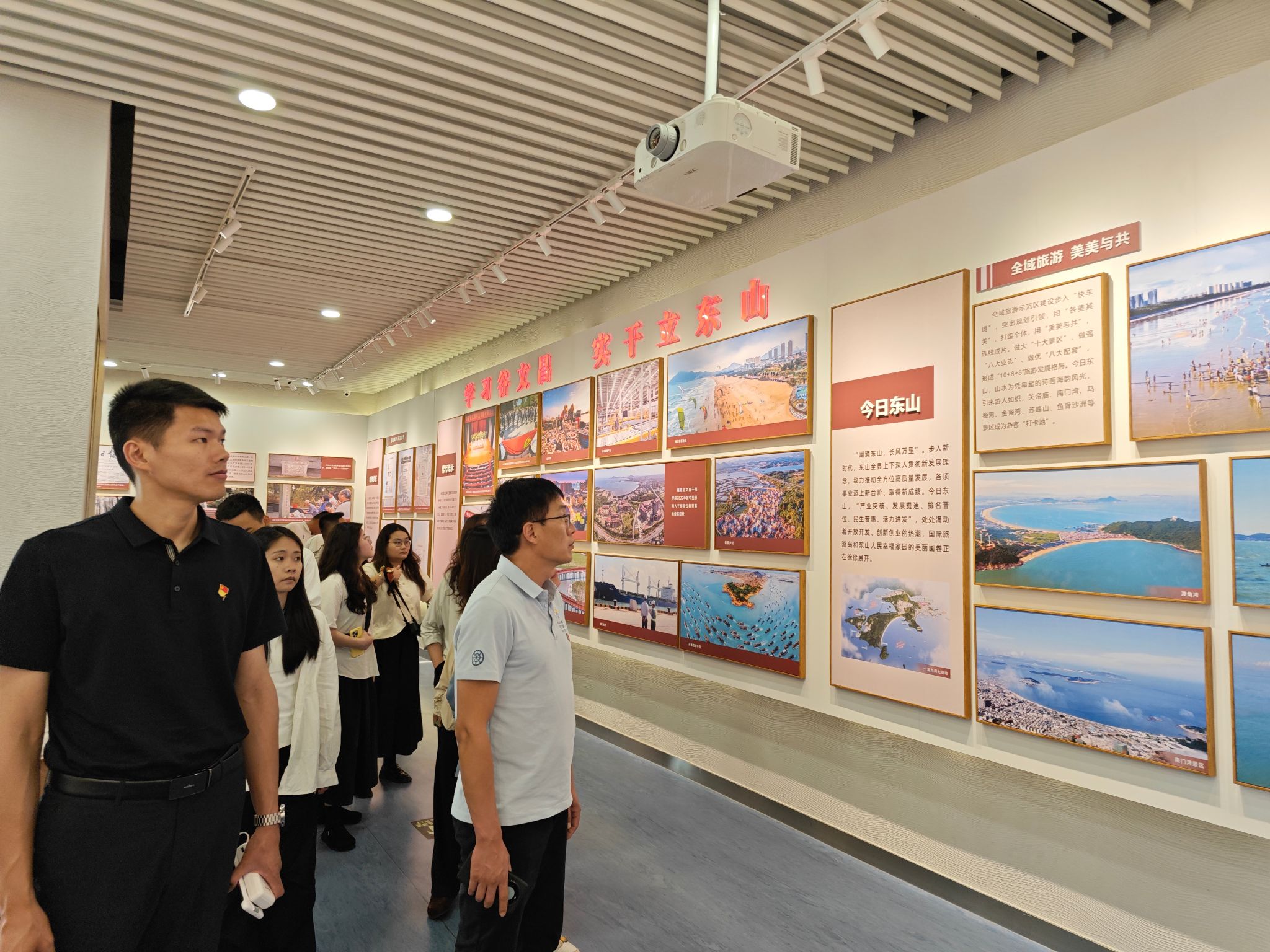 在谷文昌纪念馆,师生党员认真观看文献图片,细心聆听讲解,进一步了解谷文昌同志带领东山人民坚定不移地开展植树造林、根治风沙,从根本上改变东山生态环境的动人事迹,更加真切感受到谷文昌同志怎样用一名共产党员的言行赢得了老百姓的信任和敬仰的点滴细节,从而汲取奋勇争先、担当作为的精神力量。