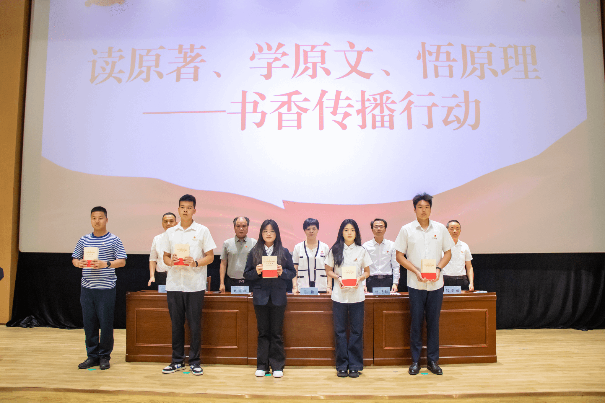 在“读原著、学原文、悟原理——书香传播行动”环节中,校党委委员为学员代表赠送《习近平关于加强党的作风建设论述摘编》书籍,引导学员认真研读,将书中理论内化为自身修养,外化为实际行动,加强党性锻炼,严守党的纪律,以优良作风为党组织注入新活力。