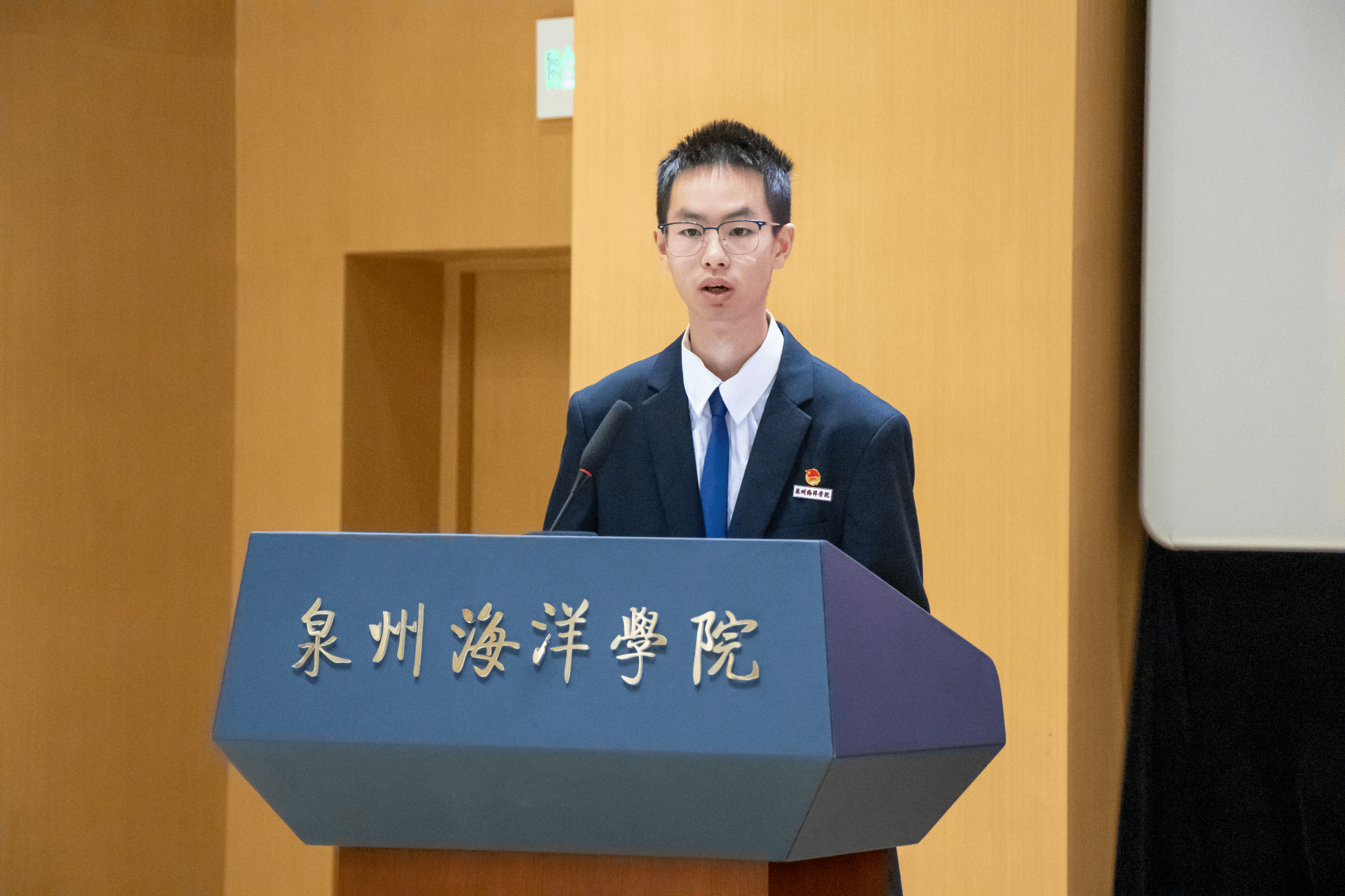 信息工程学院计算机237班李松源同学代表本期学员上台发言。他表示,将以此次培训为新起点,主动提升政治素养与综合能力,以实际行动接受党组织的考验,争取早日加入中国共产党。