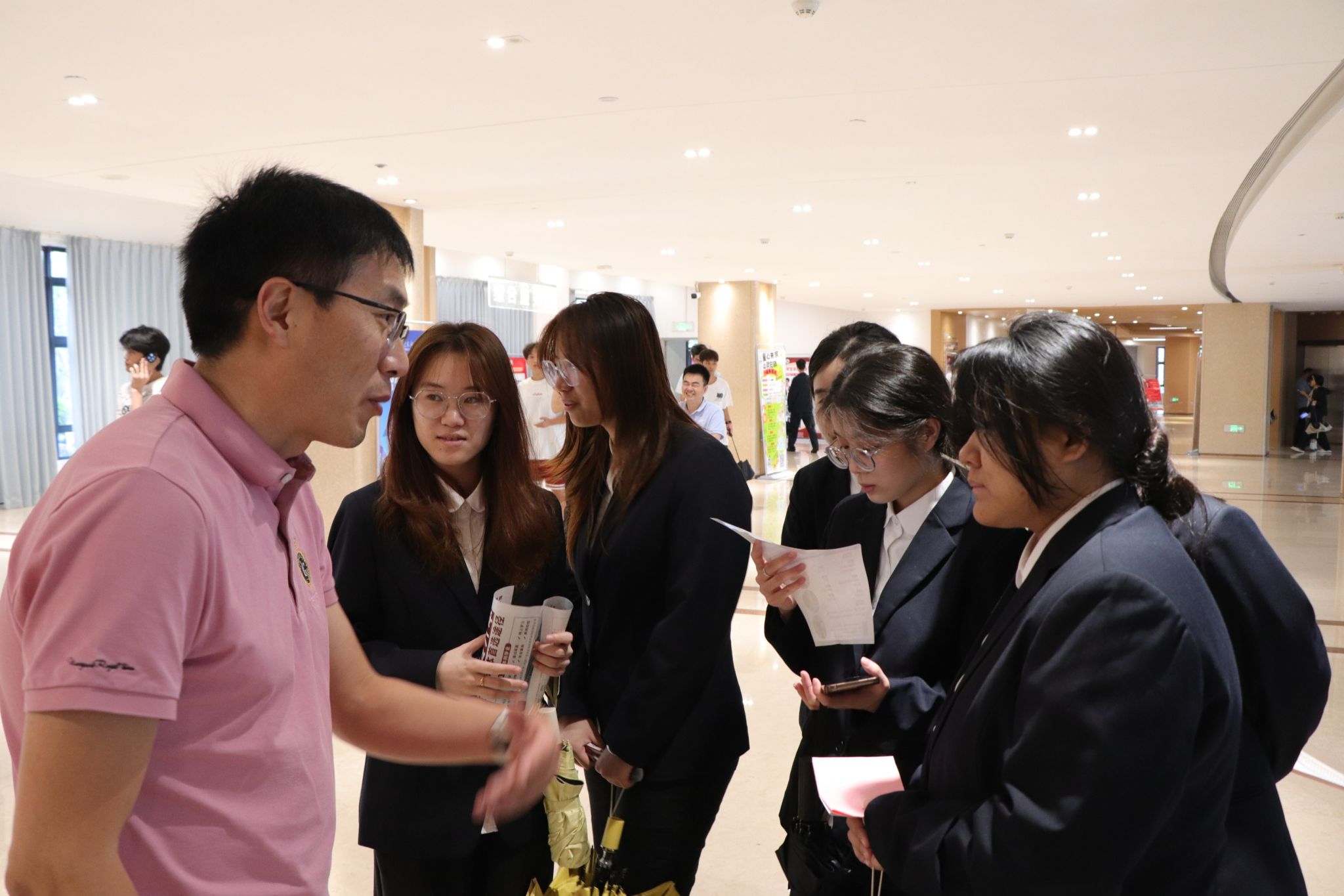 艺术体育学院院领导也高度重视此次招聘会,他们逐一走访各个企业展位,与企业招聘负责人就单位招聘用人标准、未来发展规划、行业最新动态以及薪酬待遇等核心问题进行了深入交流。同时,院领导还耐心聆听前来应聘的毕业生的求职需求,鼓励他们要充分发挥专业优势,做好长远的职业规划。