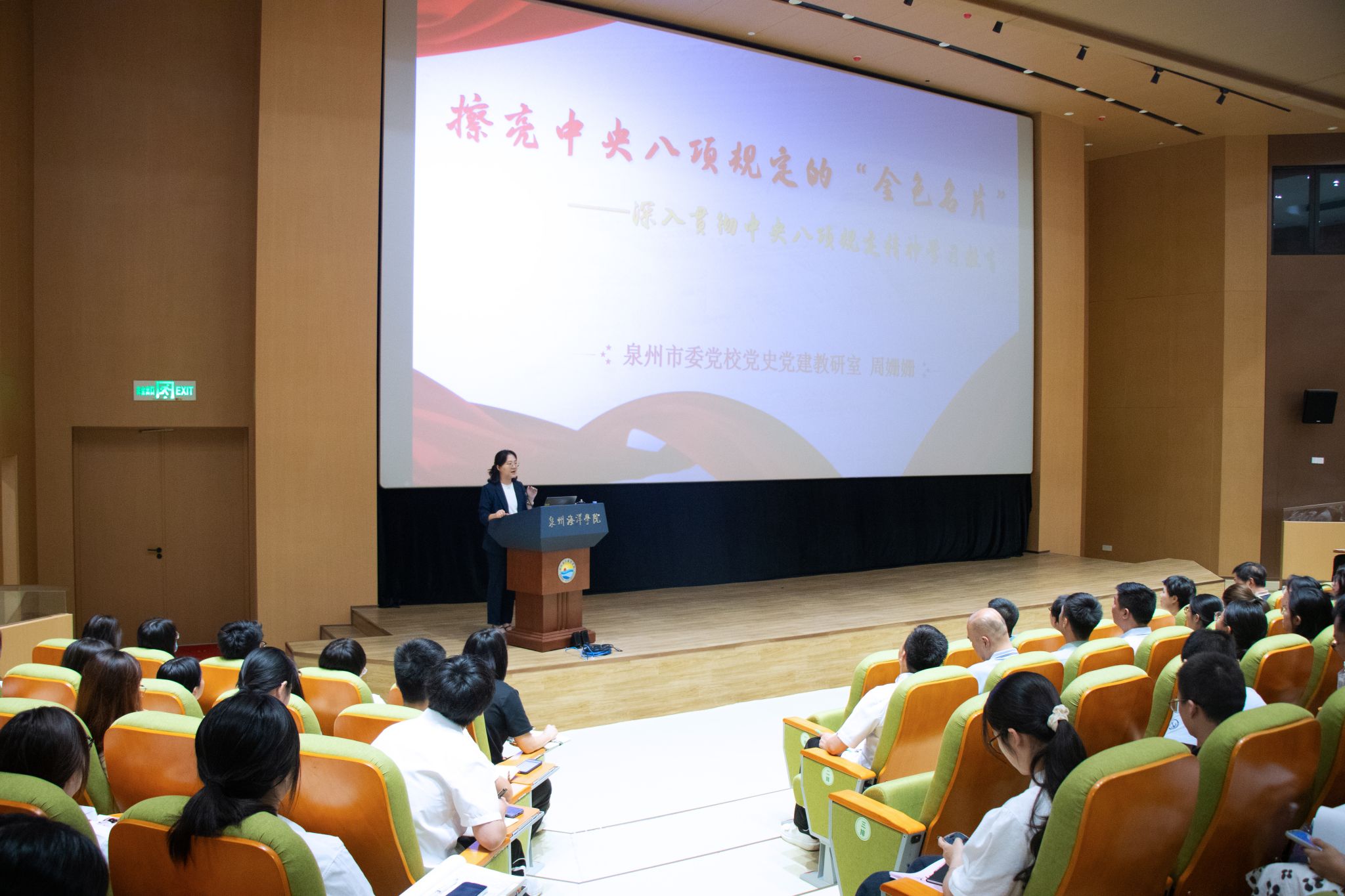 (新闻中心讯 党委宣传部报道)为进一步增强全体党员干部师生的政治意识、纪律意识和规矩意识,推动学校作风建设走深走实,营造风清气正的校园政治生态,6月4日,学校举行深入贯彻中央八项规定精神学习教育专题辅导报告会,特邀泉州市委党校党史党建教研室讲师周姗姗担任主讲人。党委班子成员、党委职能部门成员、各二级基层党组织班子成员,以及党校第二十九期入党积极分子暨发展对象培训班学员参加会议。