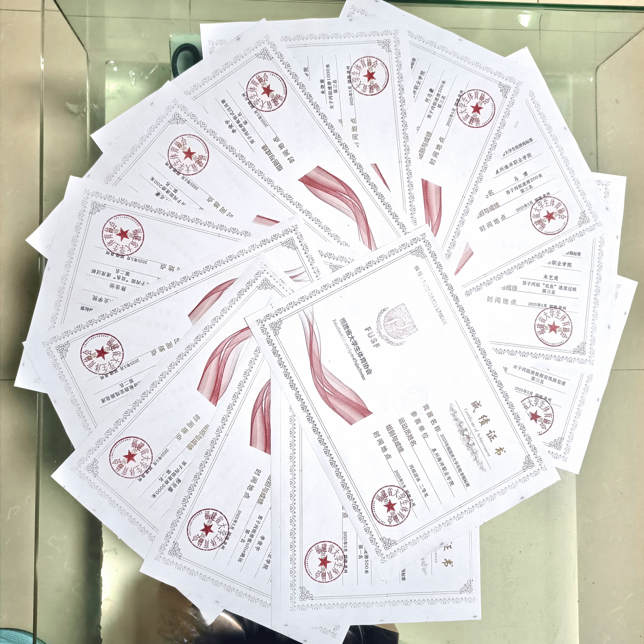 李俊宇在男子滑板赛事中独揽ollie跳远金牌与街头道具赛银牌,陈志超在指定线路竞速中摘铜;叶淑影在女子指定线路竞速中斩获银牌,展现了我校滑板项目的竞技潜力。