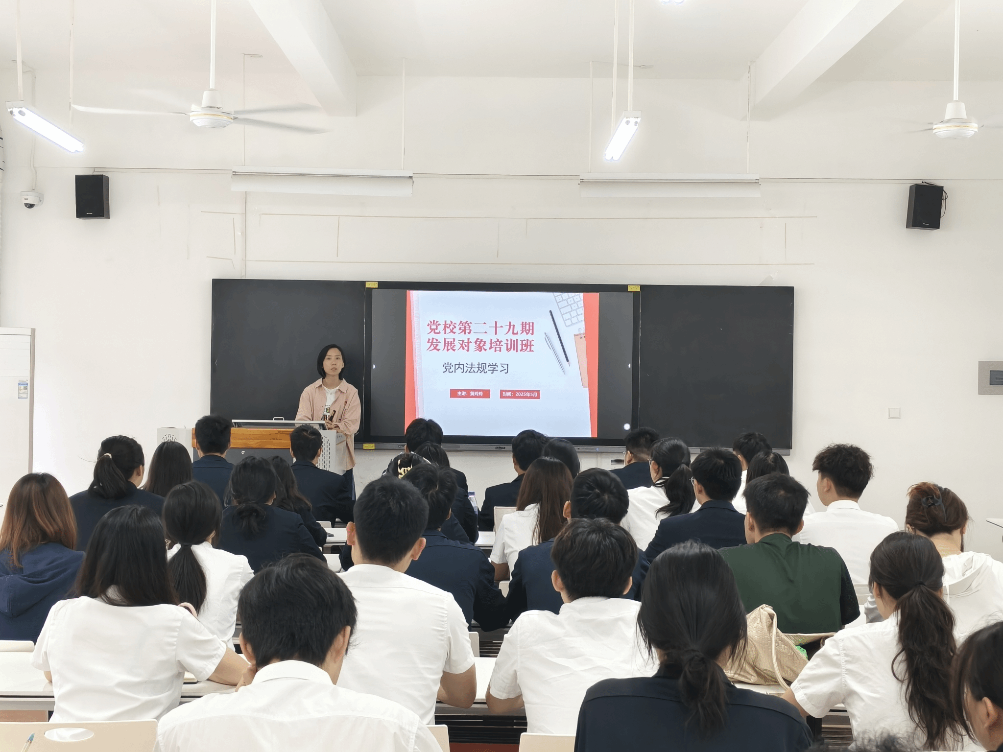 培训期间,培训班班主任黄丽霞围绕培训班学习纪律规定、党员发展流程、材料规范填写等展开讲解,帮助学员清晰认识党员发展的严谨性与规范性。