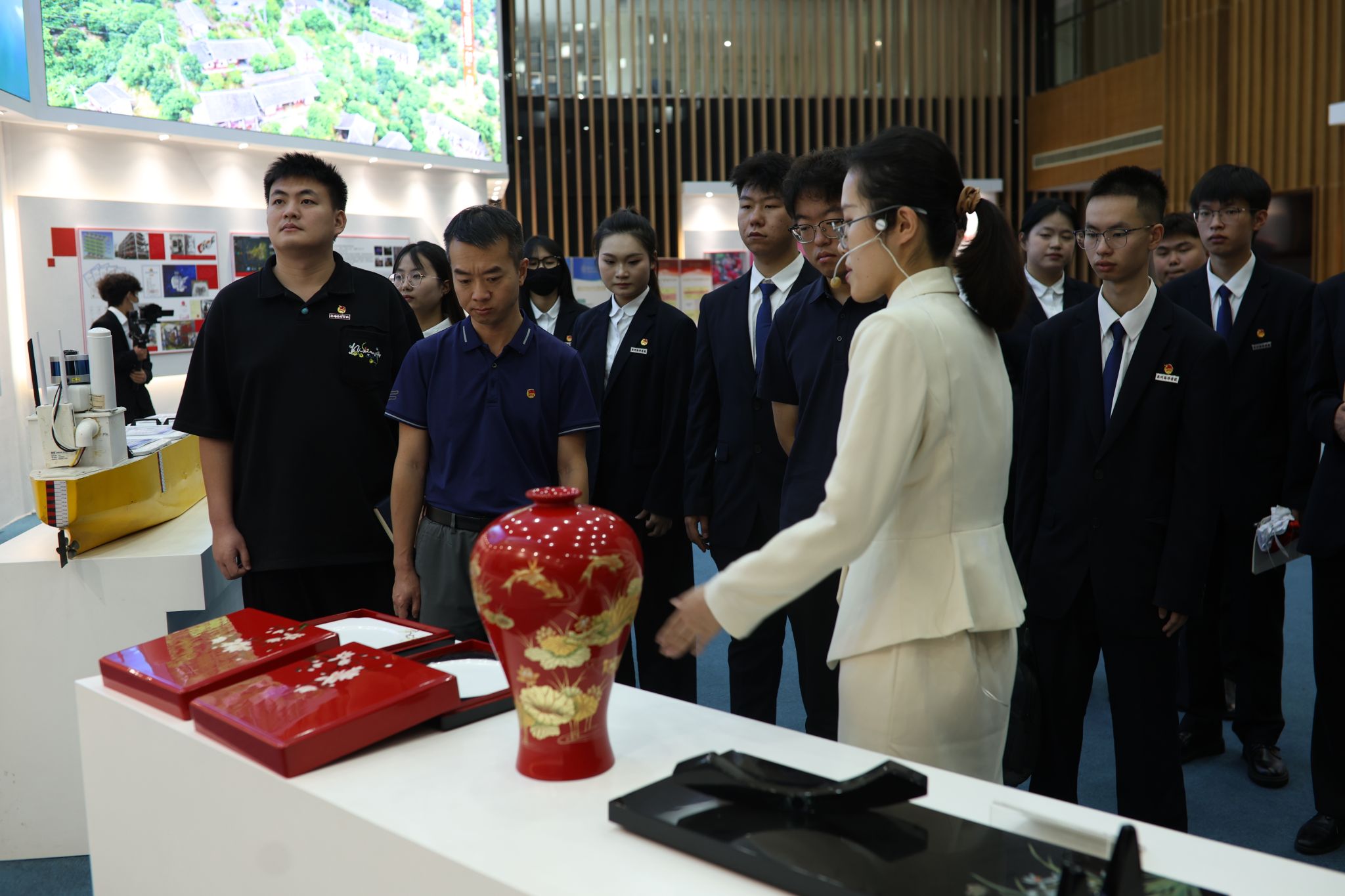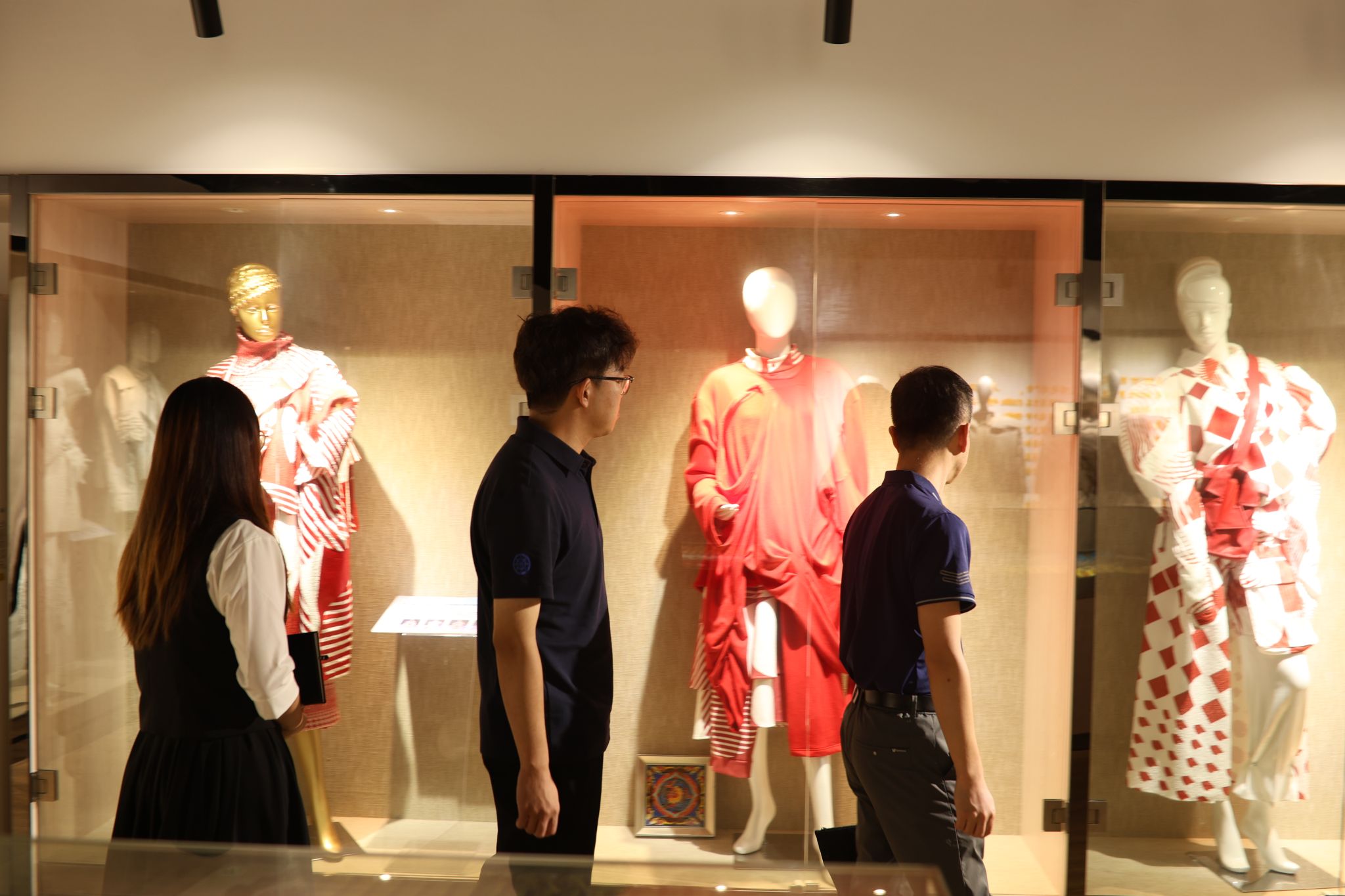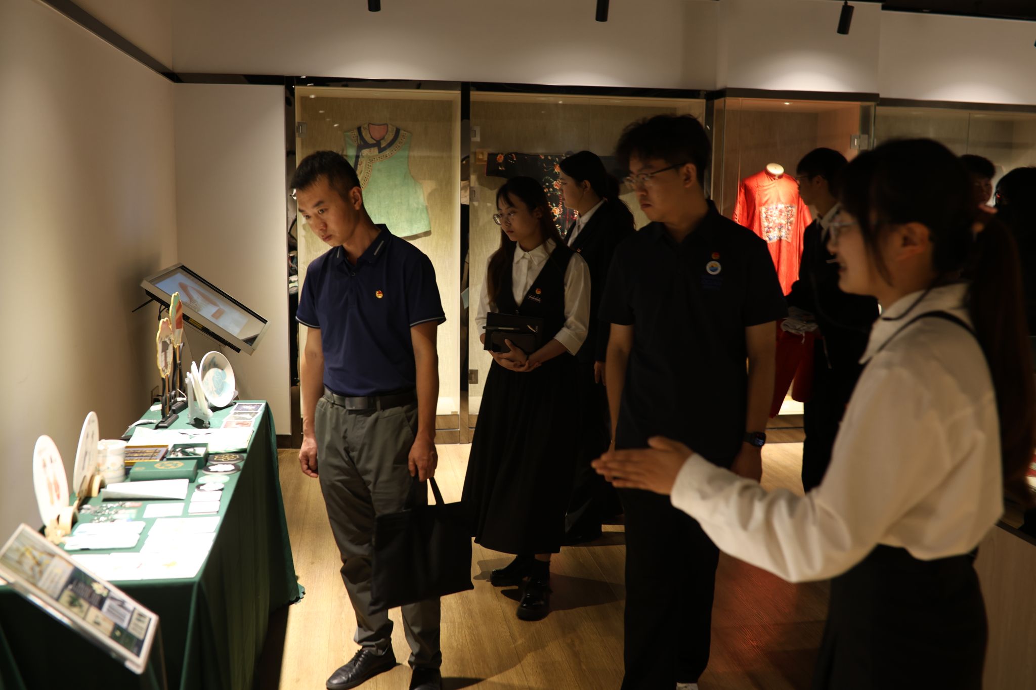 随后,交流团移步至海峡两岸服饰文化交流体验中心。这里丰富多样的展品与创新展示方式,生动展现海峡两岸服饰文化的独特魅力与深厚渊源。参观过程中,师生们不仅领略到服饰文化的博大精深,更深刻体悟到两岸文化同根同源的紧密联系。
