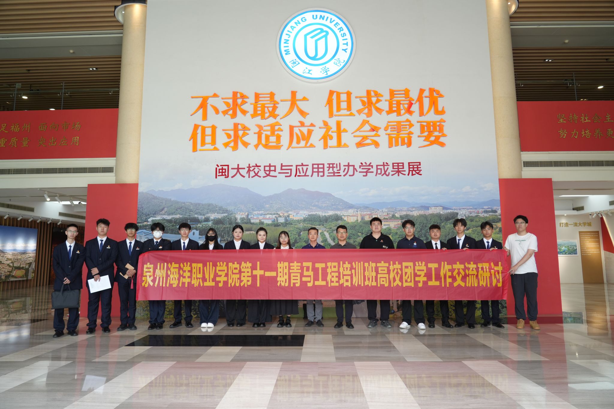 (新闻中心讯 校团委供稿 党委宣传部报道)6月5日上午,校团委书记余斐虎、副书记肖伟强带领师生一行17人,前往闽江学院大学城校区开展联学共建调研。闽江学院团委书记王艳婷、副书记田盼盼等相关负责人予以热情接待,双方围绕校史文化、思政建设、共青团工作等多个关键领域展开深入交流。