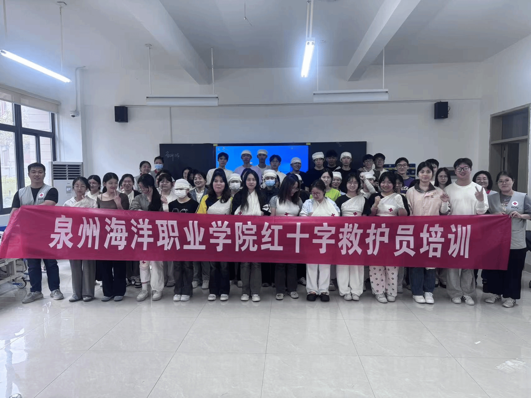 (新闻中心讯 校团委供稿 党委宣传部报道)泉州海洋职业学院2025年春季红十字救护员培训工程近日圆满收官。该项目历时三个月,跨越13个周末,开设30个教学培训班,累计培训学工队伍全体教师、护理专业学生、校院两级学生干部及宿舍长等1414人。学校通过构建“深化分层培养、固化学训一体、强化协同保障”的“三化”培训体系,实现学工队伍全员获证、学生获证率达在校生10%的显著成效,推动校园急救能力从点状突破到网状覆盖的全面提升,为“平安校园”建设提供了有力支撑。