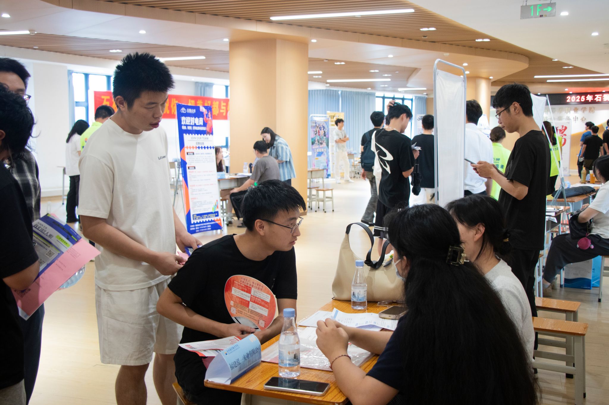 本次招聘会共组织101家优质企业进场招聘,提供岗位需求3300多个,涵盖电商运营、机电维修、纺织面料研发等相关产业领域,吸引了25届未就业、26届毕业生4200余人参与实习、就业对接。参加招聘会的同学手持精心准备的简历,有序地与企业招聘人员深入沟通与交流,认真寻找优质岗位。现场还特别设置了石狮就业创业、征兵、升学考证、资助等咨询专区和直播带岗环节,为毕业生提供一站式就业服务。