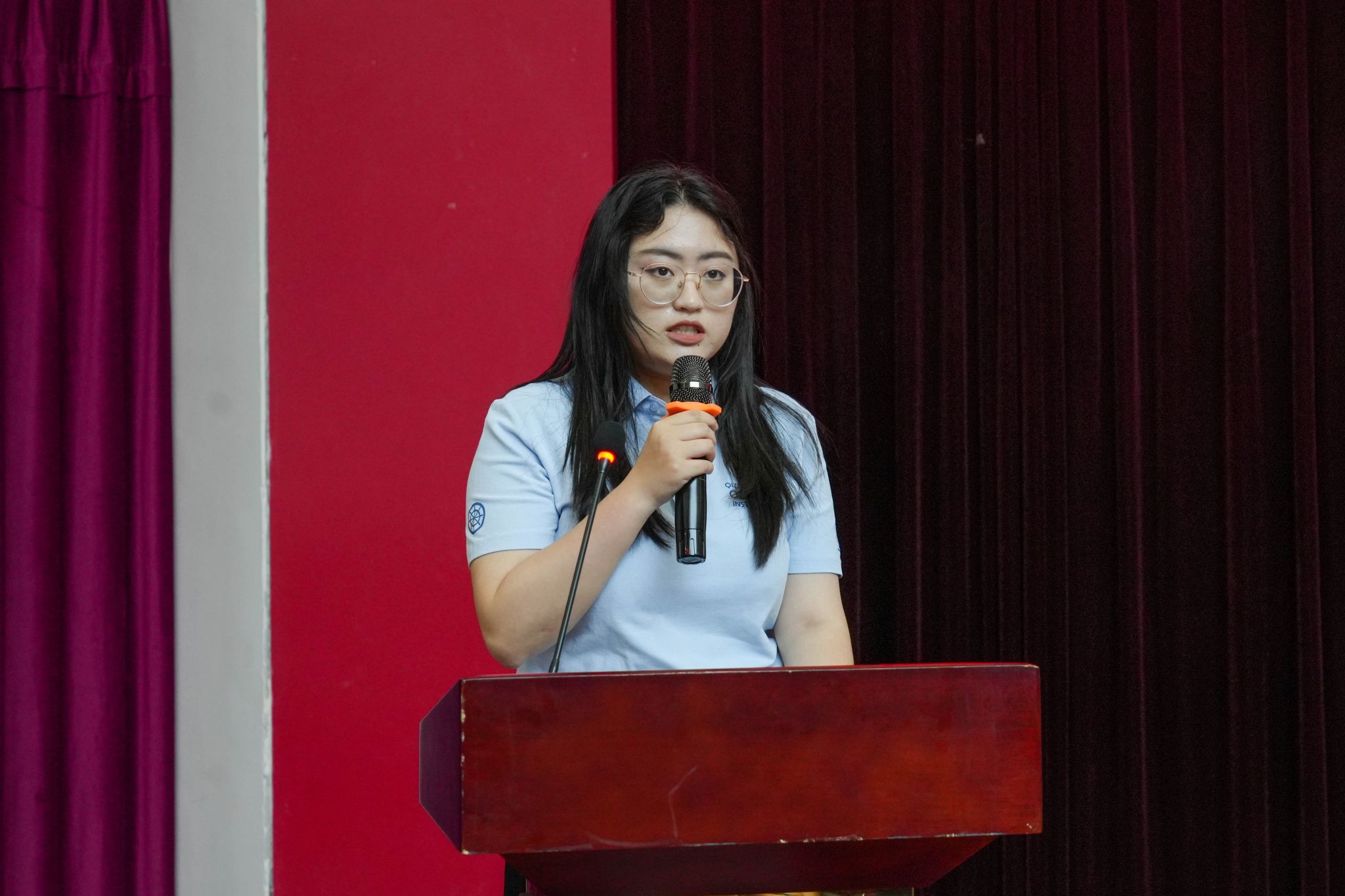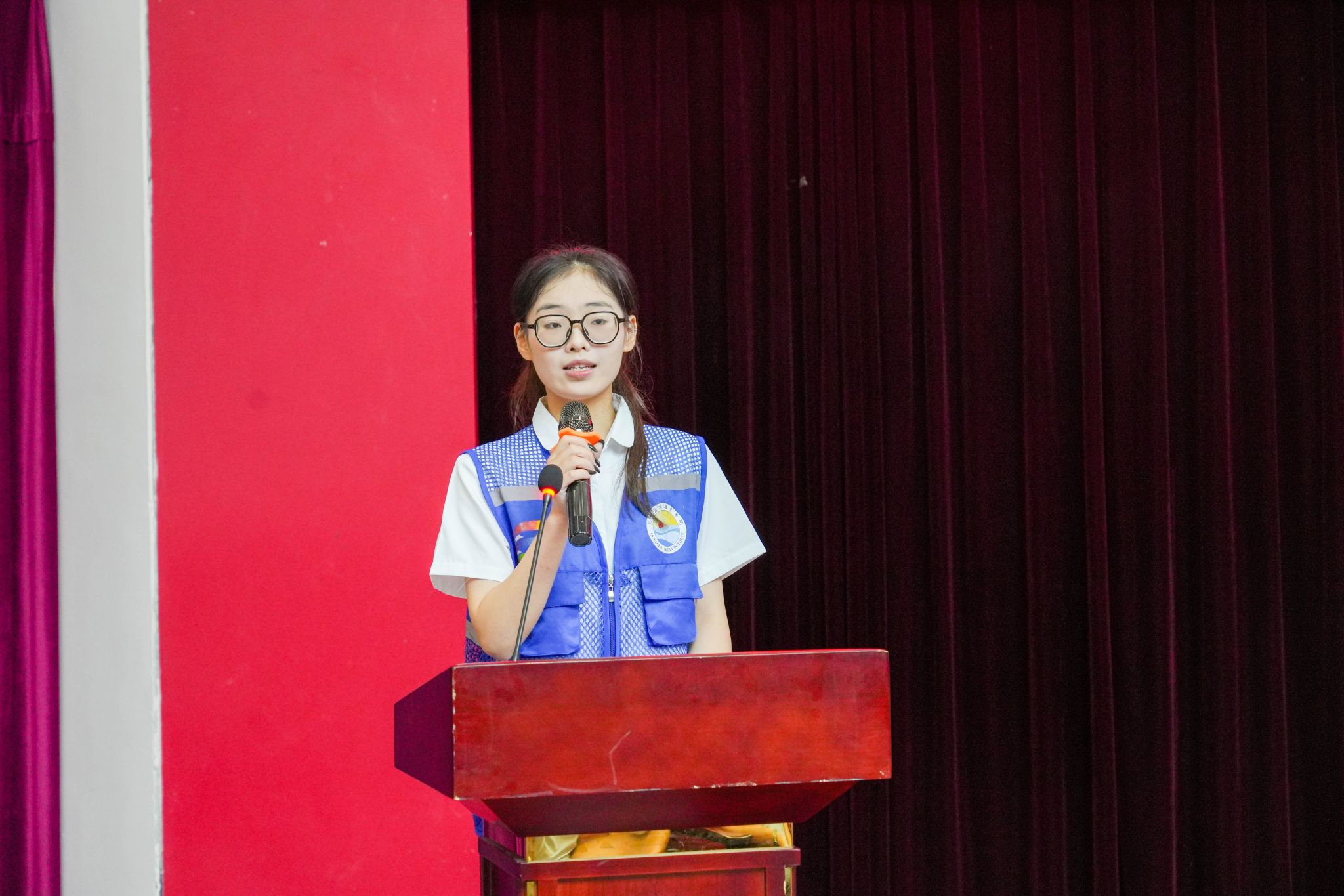 2025年实践队成员丁婉婷同学进行表态发言。她表示,生态文明建设是时代的呼唤,保护水资源、维护河流健康更是我们这一代青年不可推卸的责任。全体实践队成员必定脚踏实地在基层中奋发作为,将以青春之名,全力守护家乡的河流山川,展现泉海青年风采,为“绿水青山就是金山银山”理念贡献青春力量。