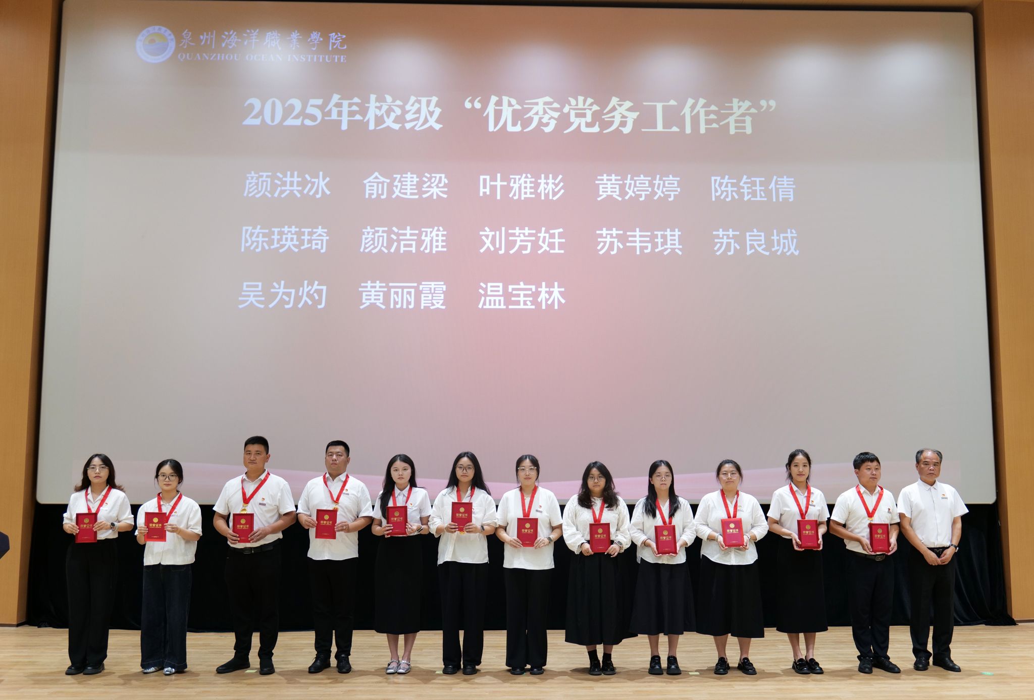 党委委员、副校长刘锦辉为校级“优秀党务工作者”代表颁奖。