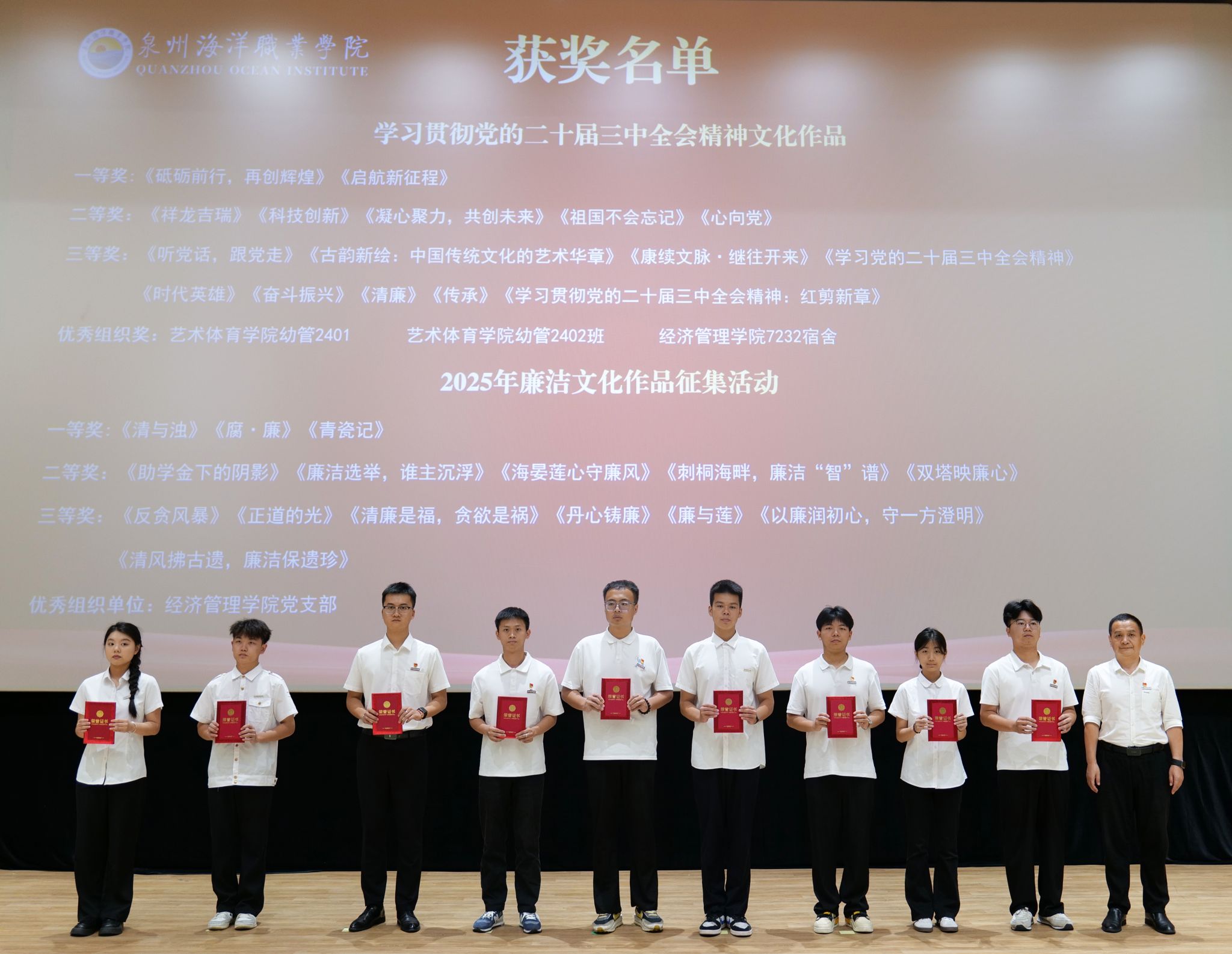 党委委员、董事长助理王鹏飞为学习贯彻党的二十届三中全会精神文化作品展活动和2025年廉洁文化作品征集活动获奖代表颁发证书,鼓励他们以作品为载体,为新时代文化传承注入新活力。