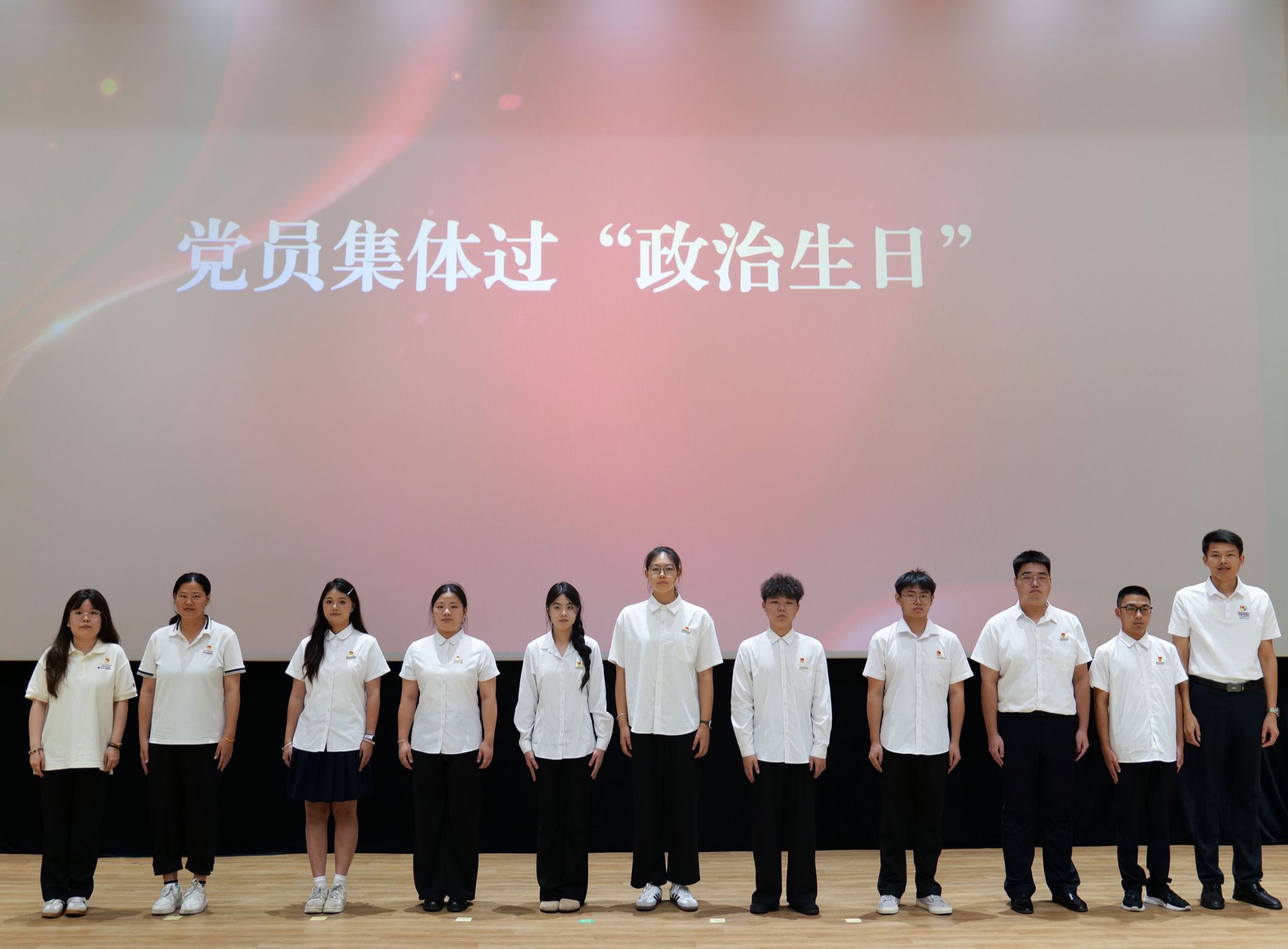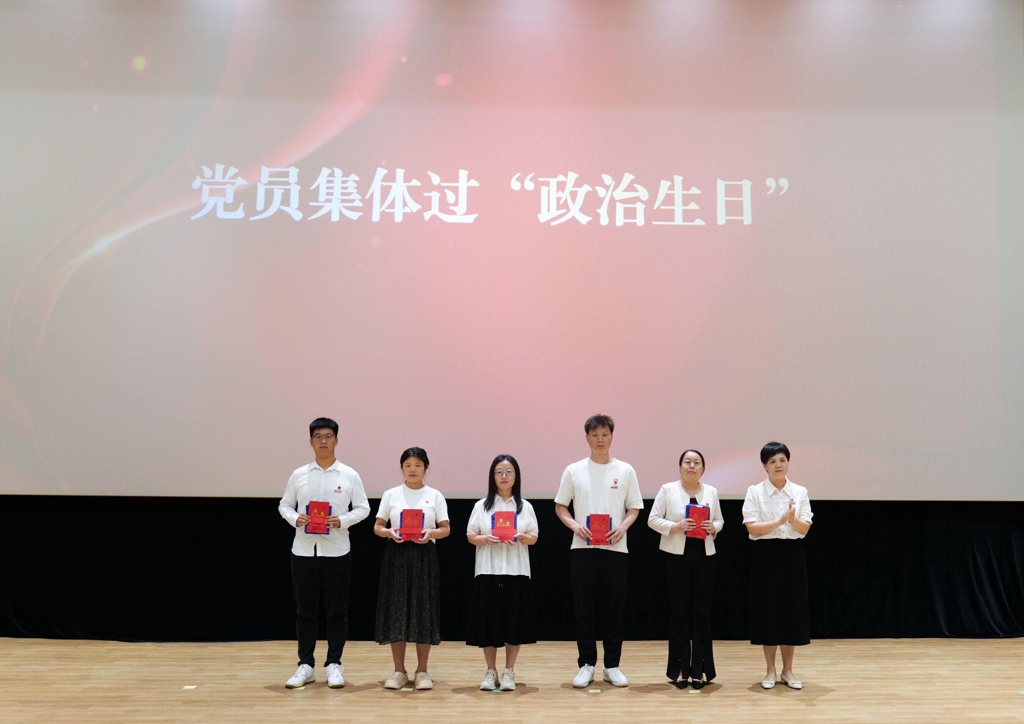 大会庄重举行了党员集体过“政治生日”仪式。新党员在党委书记郑艳的领誓下庄严宣誓,全体党员重温入党誓词。