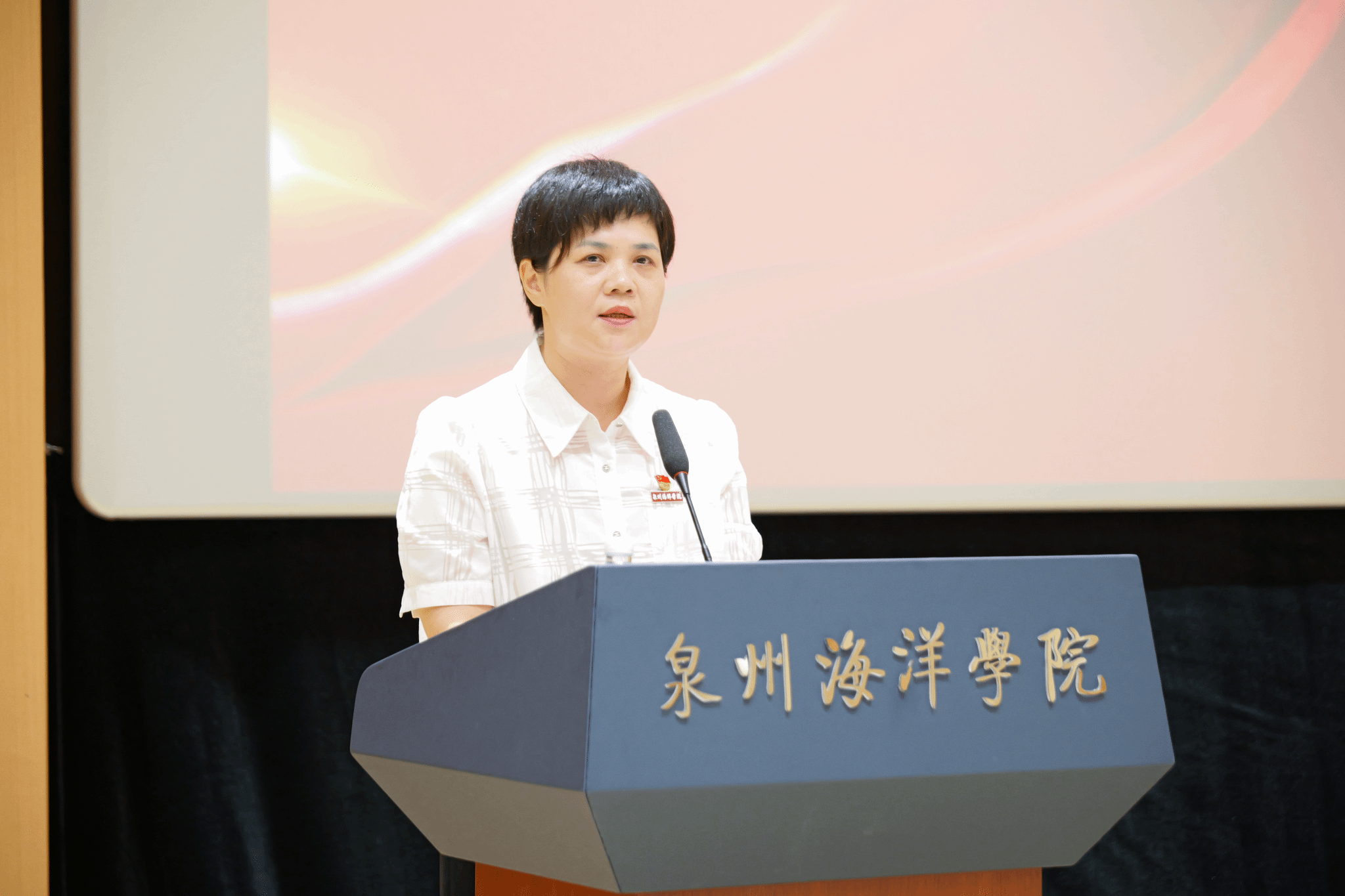 党委书记郑艳发表讲话。她指出,无论技术如何迭代,共产党员立德树人的使命永不改变!无论时代如何变迁,共产党员为党育人的初心永远鲜活!她号召全体党员共同努力,把党旗插在人生的各个战场上。把泉海办成一所教师潜心从教,学生静心求学,家长称心点赞,让政府放心社会满意的大学。
