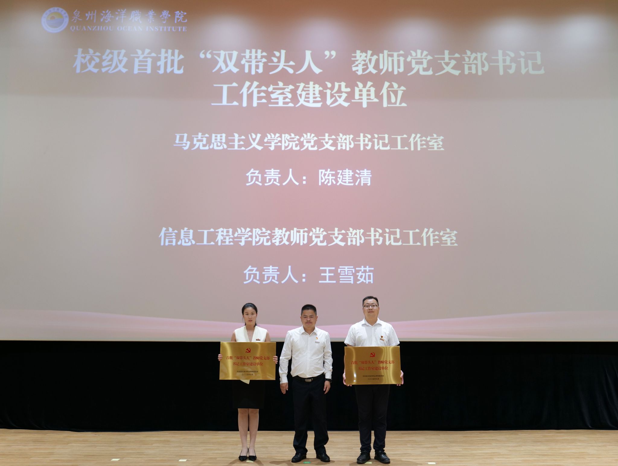 党委委员、副校长陈东水为校级首批“双带头人”教师党支部书记工作室建设单位授牌,鼓励他们在教学科研与党建等工作中发挥引领作用。