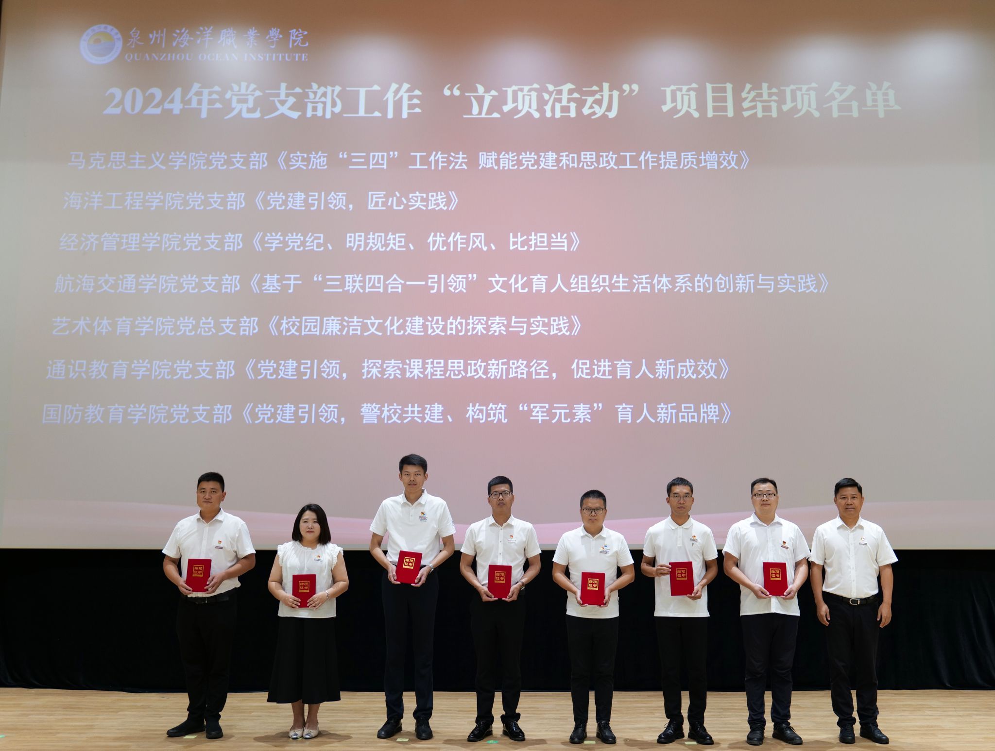 党委委员、副校长栾璋宝为校级2024年党支部工作“立项活动”7个结项项目负责人颁发证书,肯定他们在党支部工作中的创新与实践。
