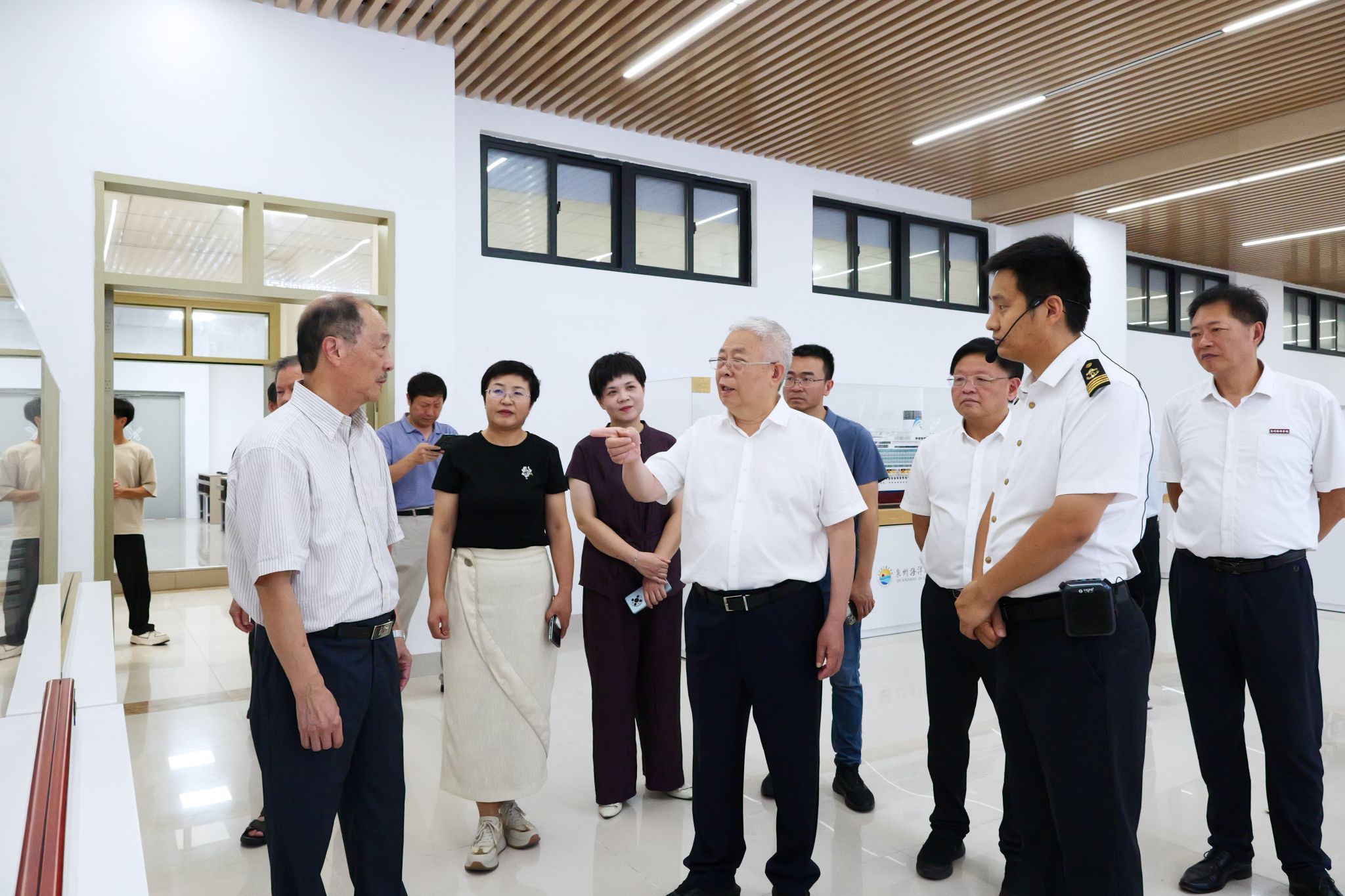 中国乡村发展志愿服务促进会一行先后参观了我校乡村振兴文化馆、海权红馆以及涉海特色实践教学场所,重点了解学校“育训并举、理实衔接”的涉海人才培养模式。刘永富会长对我校依托海洋职业教育优势巩固脱贫攻坚成果和服务乡村振兴战略的实践给予充分肯定,勉励学校深化产教融合,打造具有国际影响力的航海职业教育品牌,为海洋强国建设提供人才支撑。