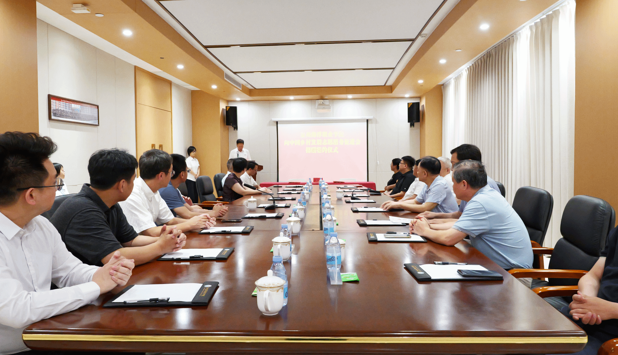 调研结束后,举行了捐赠仪式。泉州海洋职业学院向中国乡村发展志愿服务促进会捐赠300万元人民币,旨在以实际行动践行社会责任,为乡村发展事业增添强劲动力。