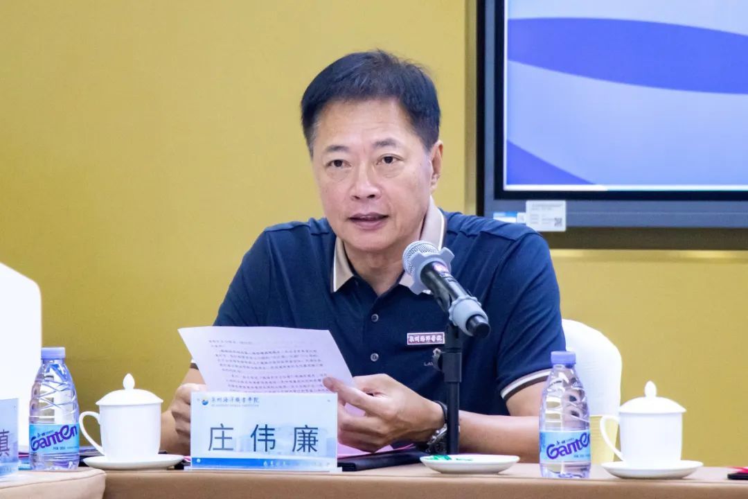 我校校长庄伟廉在致辞中热烈欢迎各界嘉宾莅校共议筹备事宜。他表示,作为福建省唯一涉海特色民办高职院校和“双高计划”建设院校,泉海依托千亩校园、280亩专属海域、42个专业及华为人工智能实训中心、科大讯飞同声传译AI智慧教室、全国首家船员考试AI智慧考场等先进智慧教学设施,构建了涵盖海洋文化教育、智慧教育体系的产教融合平台,累计培养输送涉海人才超17万人。学校将作为联合发起单位和秘书处所在单位,全力保障共同体建成及运行,期待与各方共筑人才“蓄水池”、共拓技术“试验场”、共织文化“联结网”,为航运未来锻造有情怀、精技术、能创新的生力军。
