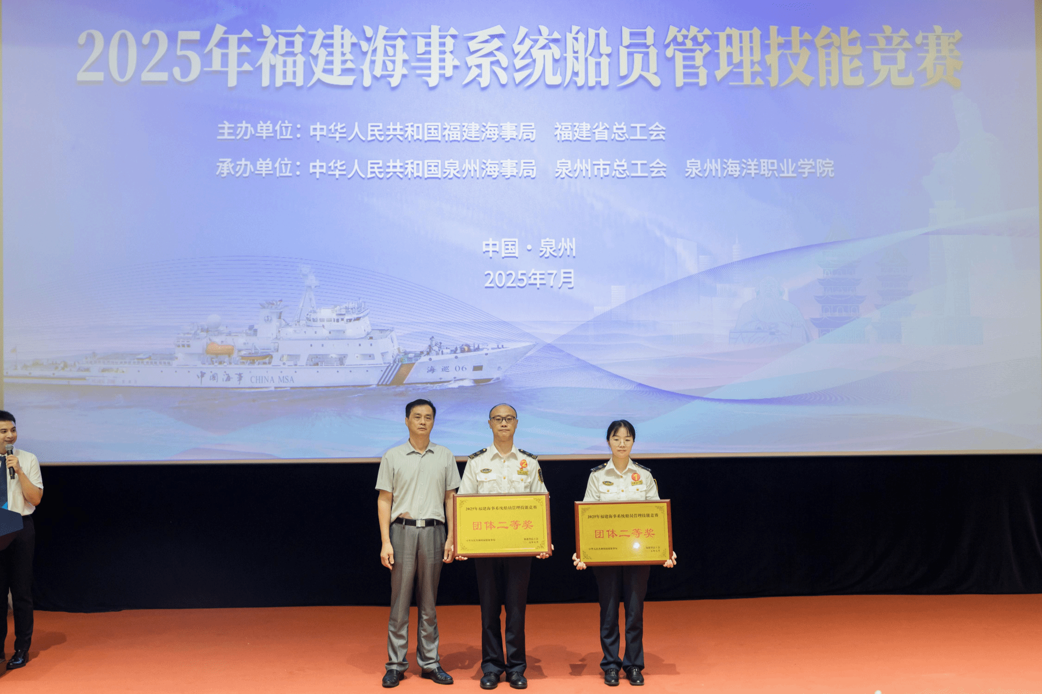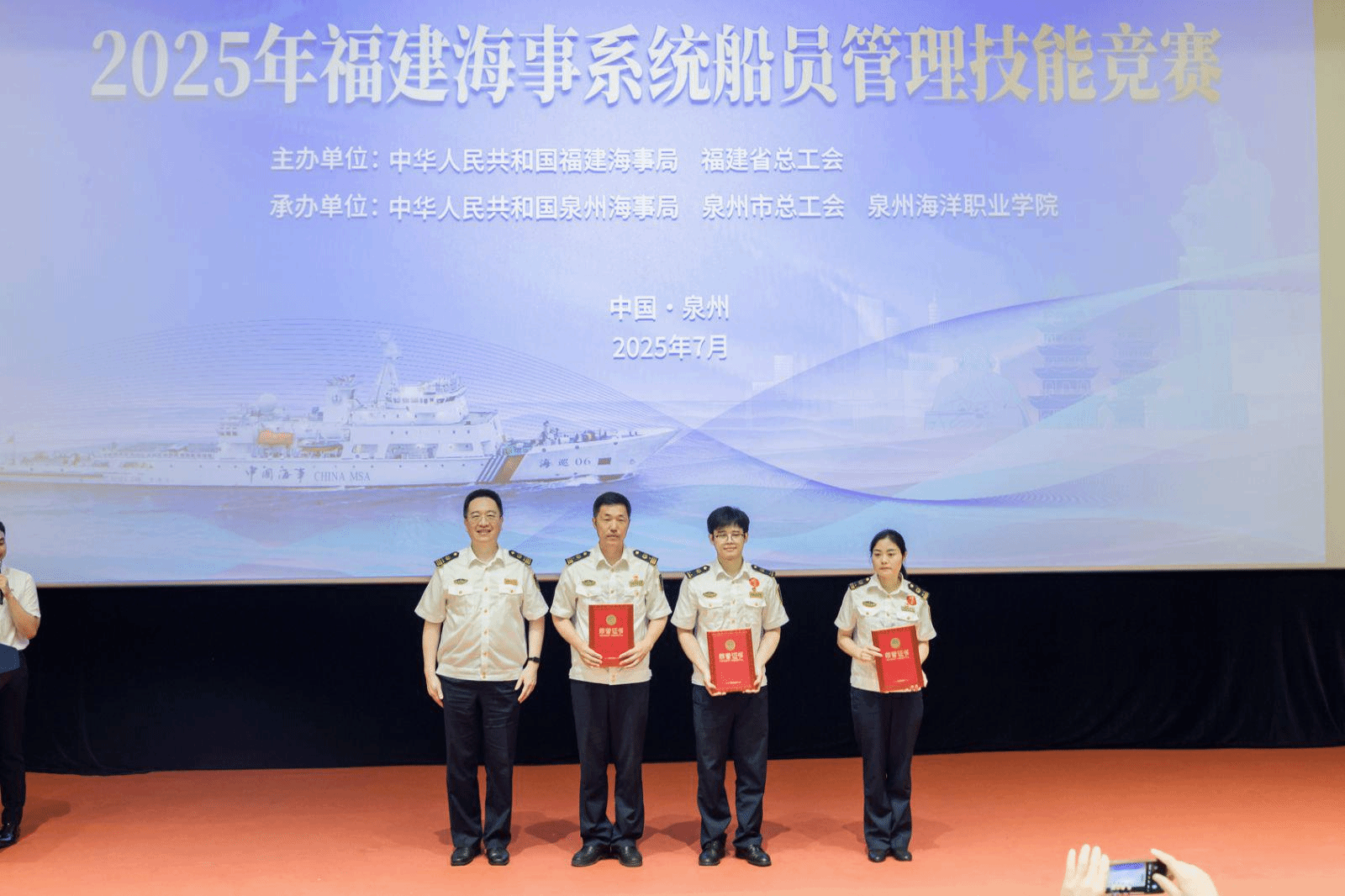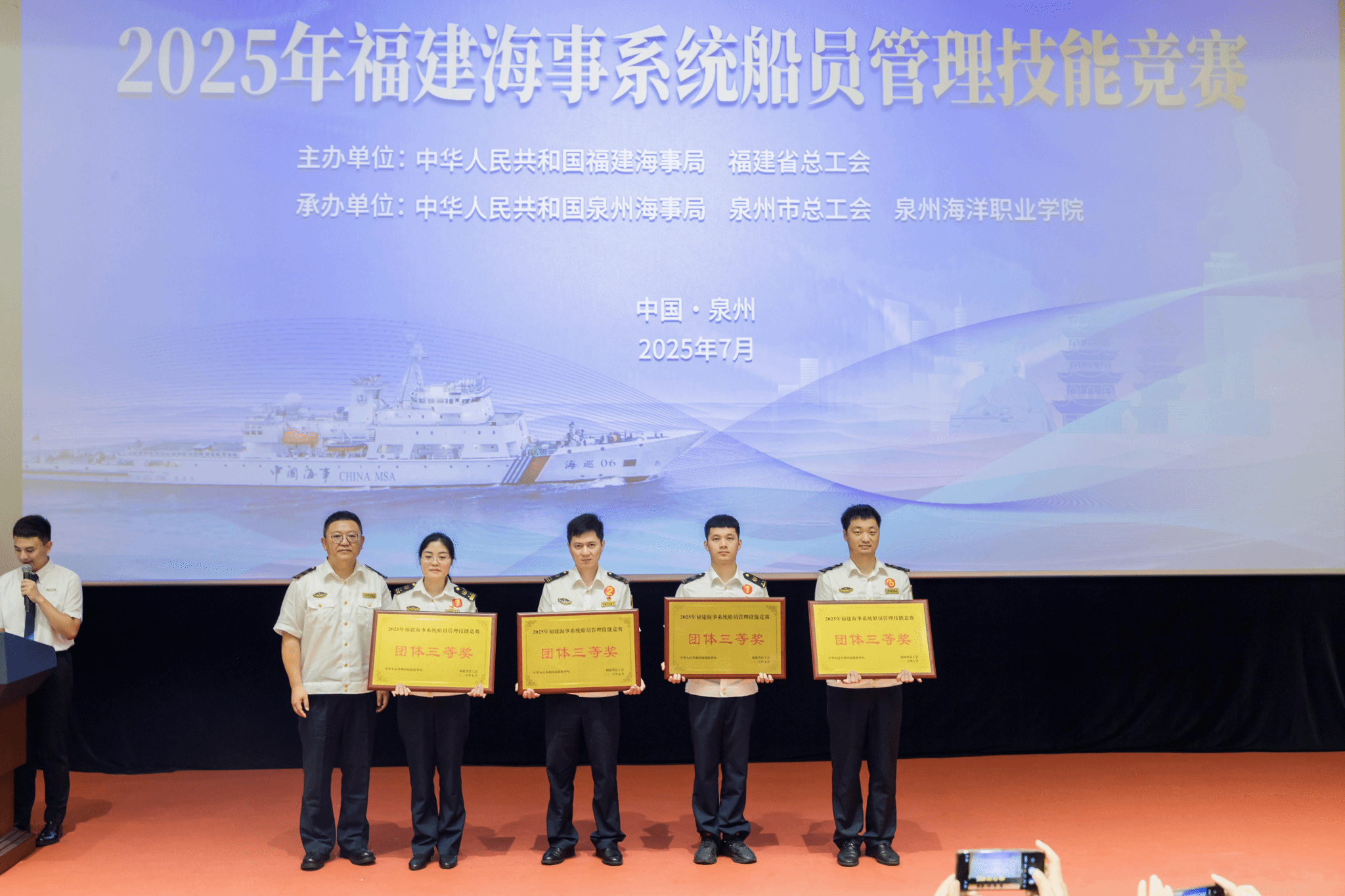 (新闻中心讯 党委宣传部报道)由福建海事局、福建省总工会联合主办,泉州海事局、泉州市总工会与泉州海洋职业学院共同承办的2025年福建海事系统船员管理技能竞赛,于7月15日至16日在我校举办。本次竞赛旨在全面提升海事系统船员管理队伍的专业素养与服务能力,为福建省海洋经济高质量发展强化人才保障。