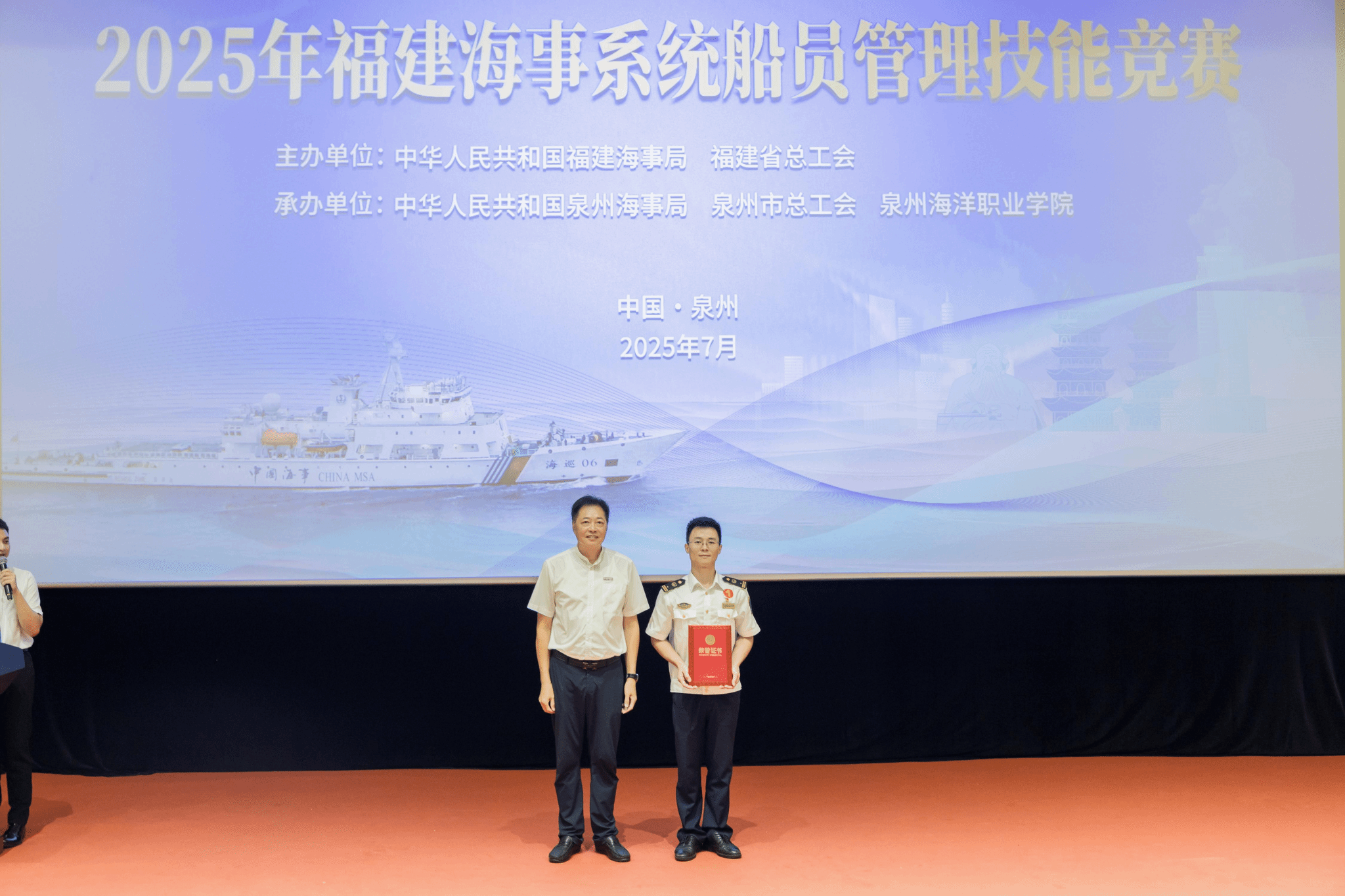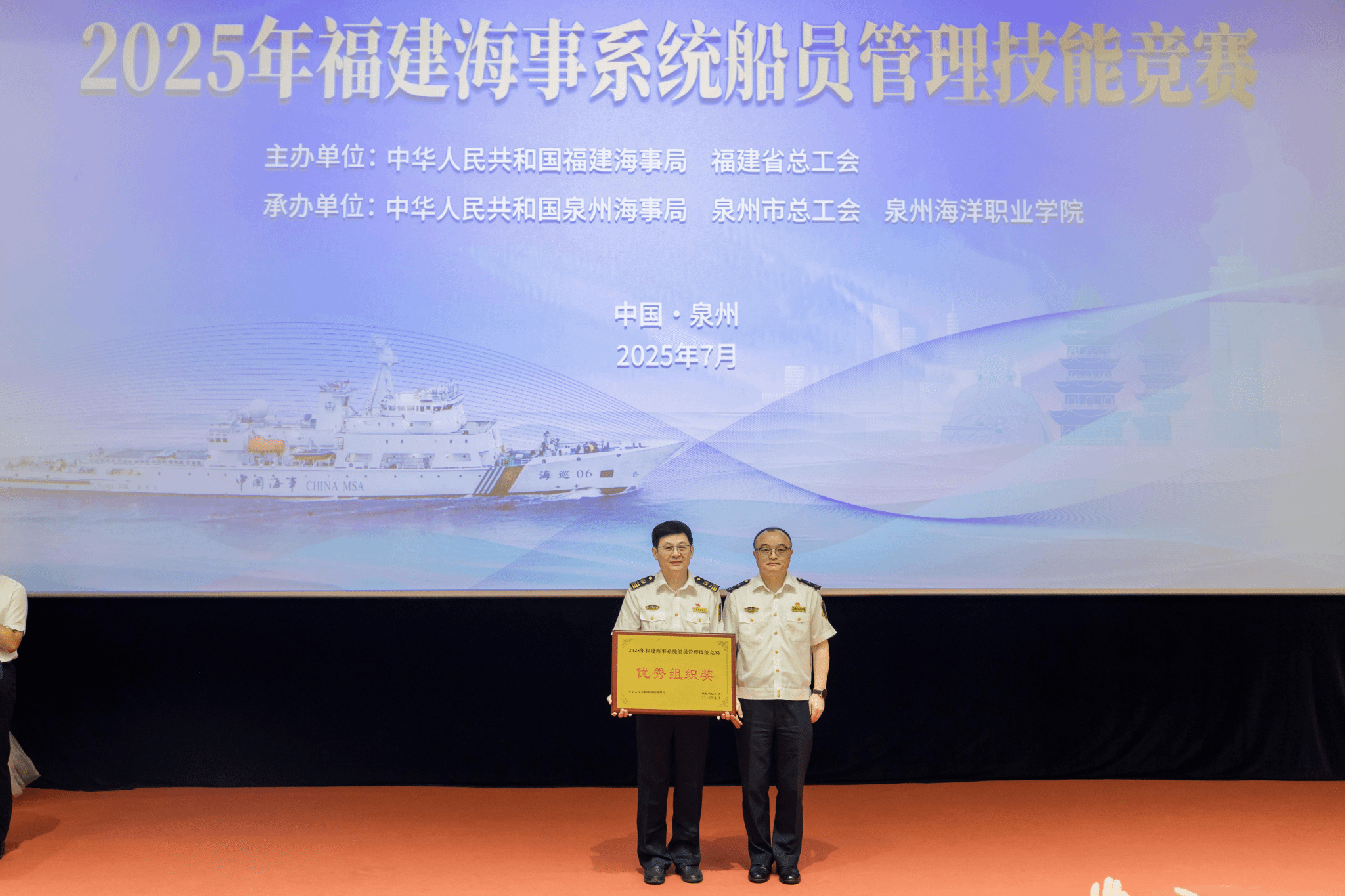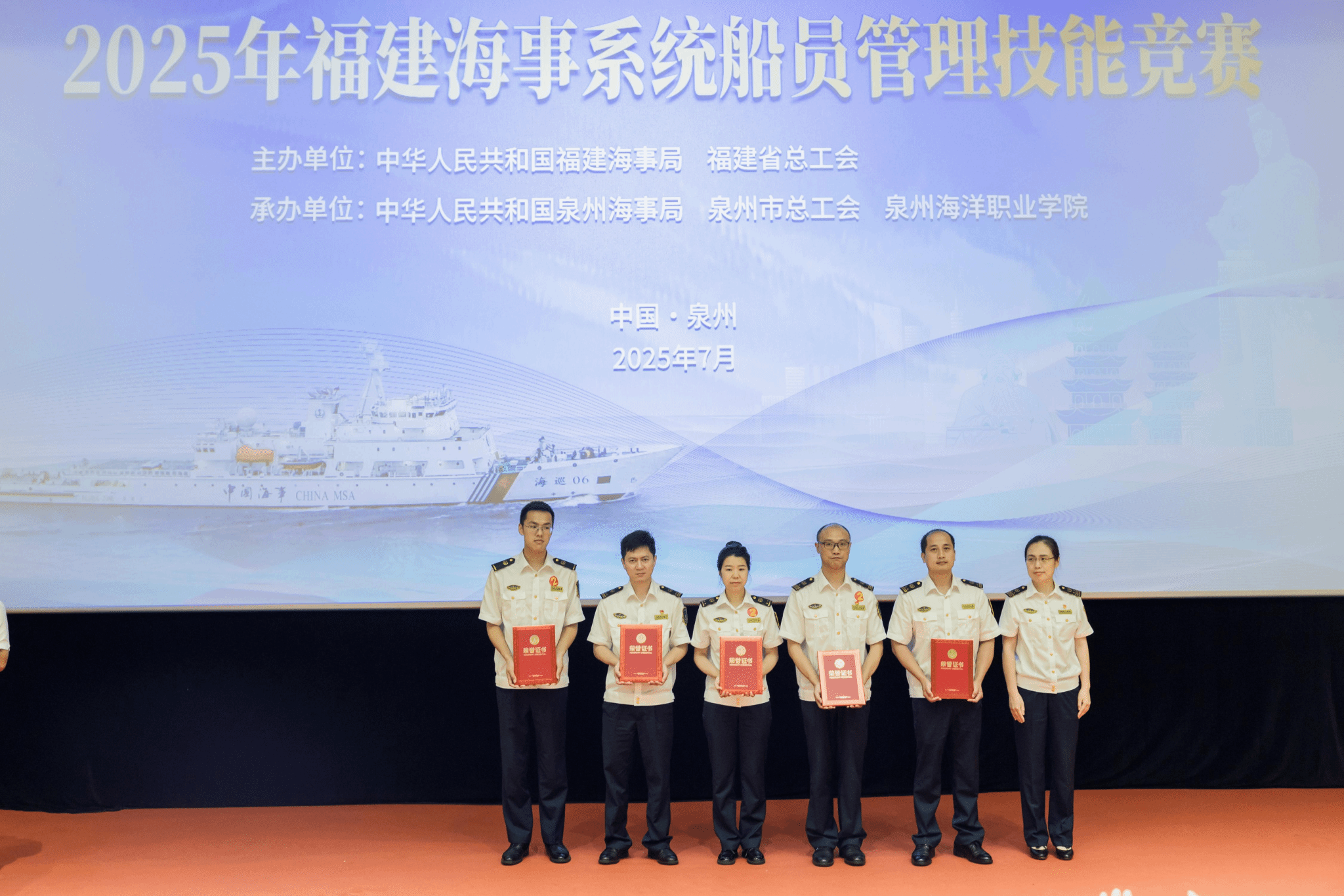 (新闻中心讯 党委宣传部报道)由福建海事局、福建省总工会联合主办,泉州海事局、泉州市总工会与泉州海洋职业学院共同承办的2025年福建海事系统船员管理技能竞赛,于7月15日至16日在我校举办。本次竞赛旨在全面提升海事系统船员管理队伍的专业素养与服务能力,为福建省海洋经济高质量发展强化人才保障。