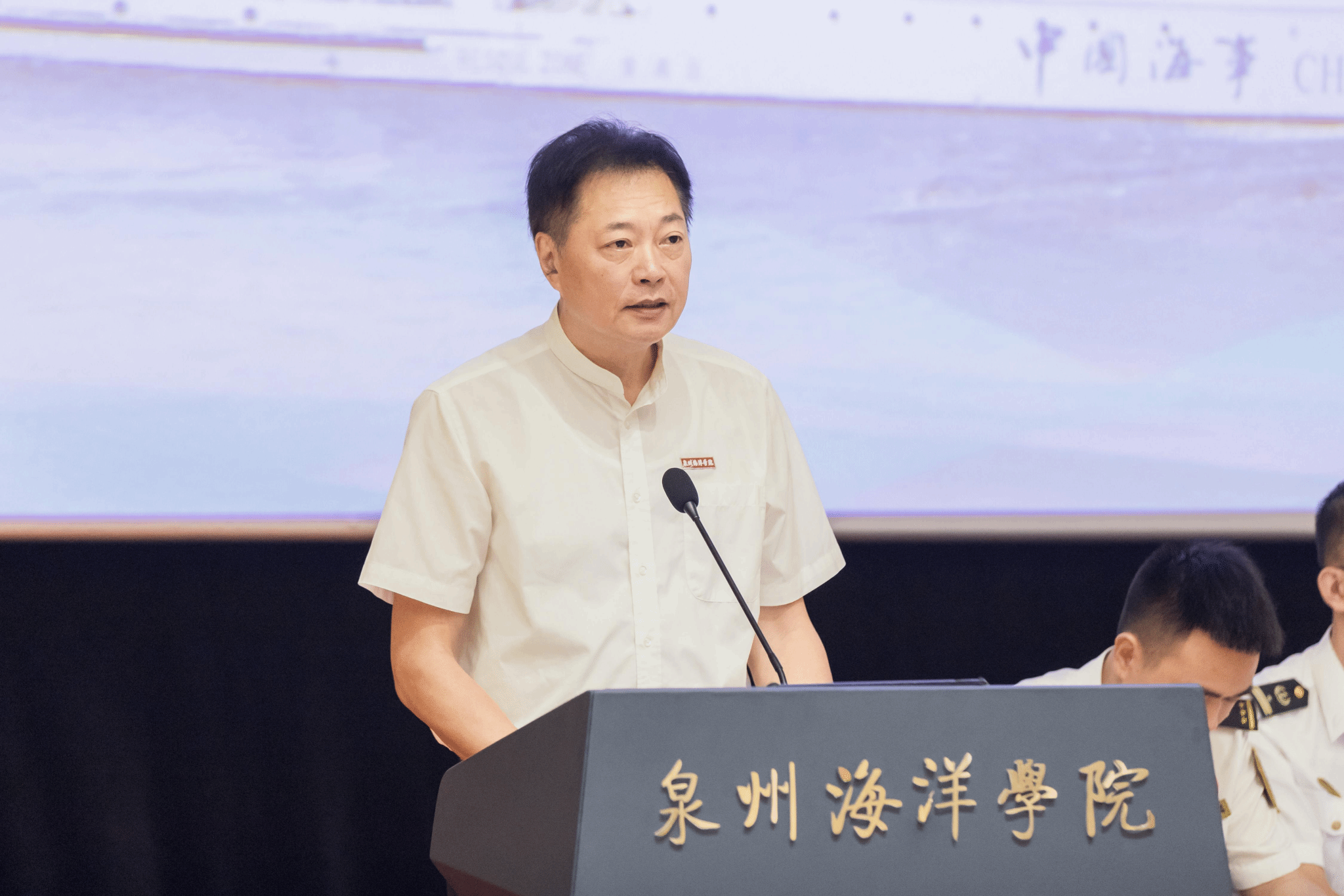 校长庄伟廉在赛前致欢迎辞,介绍了学校的航海教育特色与成果。 作为福建省双高计划立项建设职业高等院校和全国唯一拥有独立码头、港湾、沙滩、岛屿的校海一体特色高职院校,我校依托独特优势及自身发展,已建立雄厚的航海教育实力。目前拥有交通运输部海事局批准的含无限航区船长、轮机长等26项培训资质及海上安全技能培训授权。学校年培训量超4.5万人次,航海技术、轮机工程技术学历教育和船员培训规模均位列全国前列。凭借优质资源,我校成功打造船员培训品牌,为航运产业绿色转型、区域经济繁荣和海洋强国建设提供坚定的人才支撑服务。
