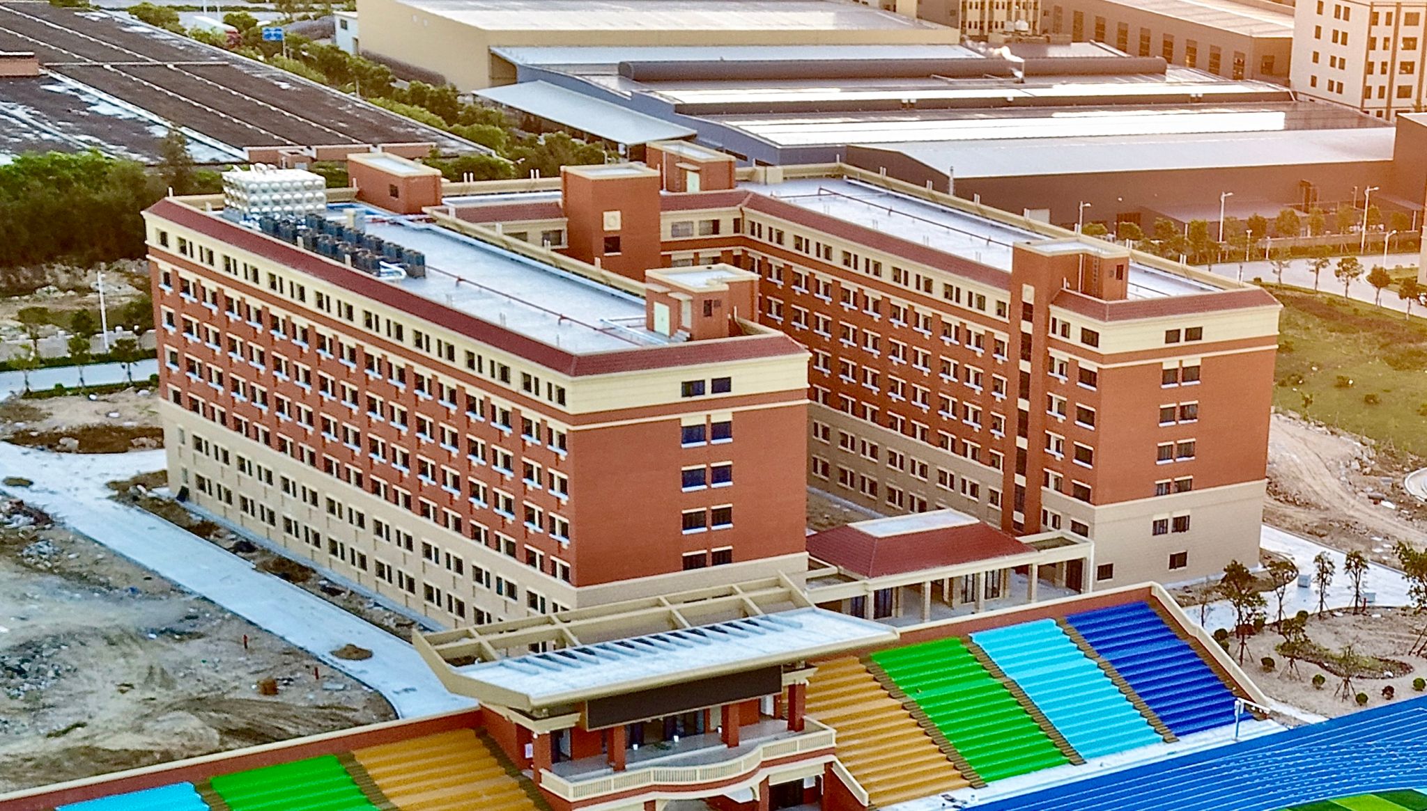 当前,三大核心建筑群——建筑面积为41428.65㎡的学术交流中心综合楼、22045㎡的14#学生宿舍楼、占地18000㎡的第二运动场(AI智慧操场)已全部完工并顺利通过住建等相关部门及五方参建责任单位主体联合竣工验收,这一系列工程的圆满落成,离不开政府主管部门在项目审批、建设协调、标准把控等各环节给予的关键性支持,正是这些有力支持为工程的高效推进筑牢了坚实保障。三大建筑群将于秋季学期初以崭新姿态迎接师生,开启泉海育人环境新纪元。