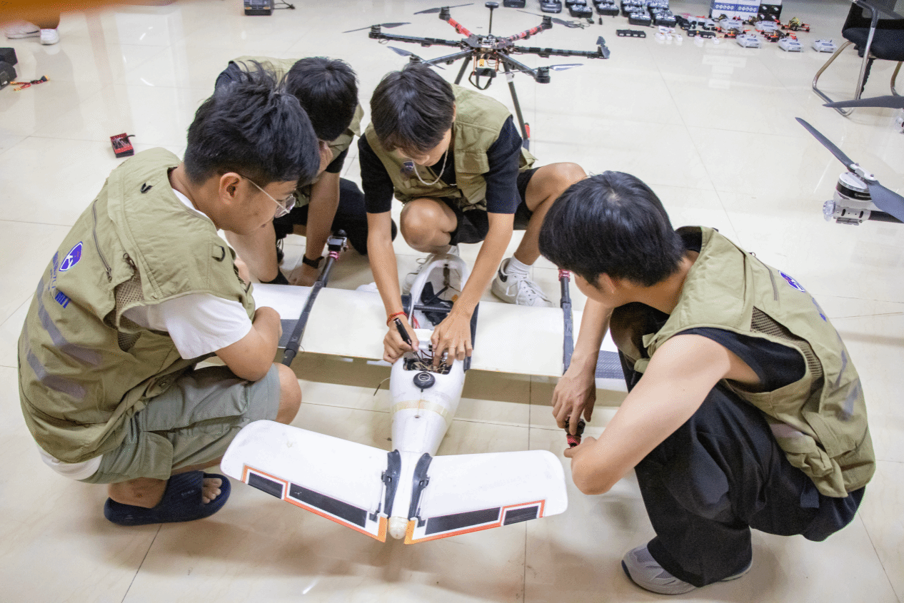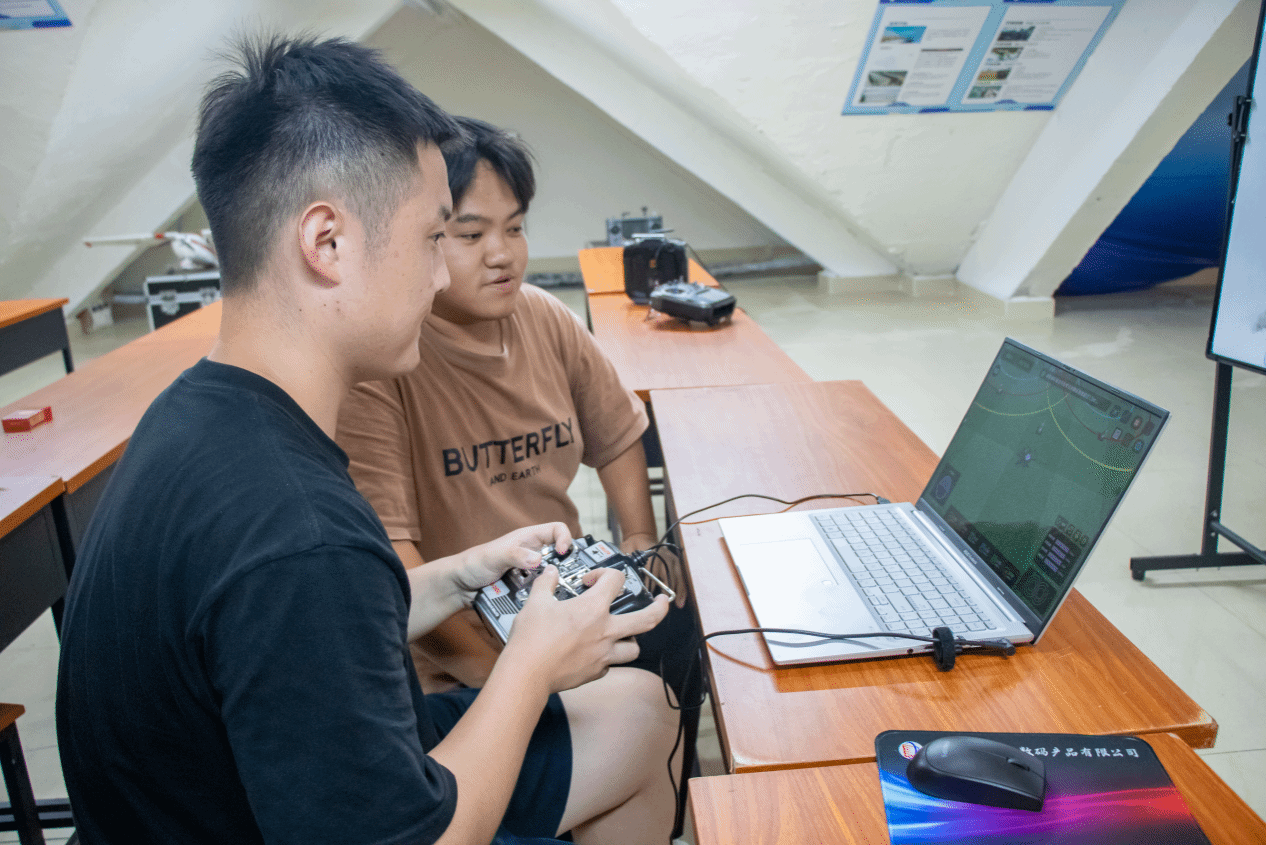 乘着2024年“低空经济”首度写入政府工作报告的东风,学校重点推进“无人机培训基地”建设,着力构建“培训-认证-应用”全链条服务体系。基地提供驾驶员与机长双等级培训,开发了多旋翼/垂直起降机型双路径课程,覆盖无人机理论、飞行技术、安全规范及行业法规。在培训基地内,专业教练团队指导学员进行四类机长训练机的“8字飞行”“四面悬停”等实操训练;在组装调试区,学生分组完成无人机的组装与调试作业;在室内实训室,学员通过专业模拟设备进行飞行训练。正在无人机培训基地参加培训的国防后备班学员常同学表示:“能在校园里就接受这么正规的无人机执照培训,真是太方便了!考取中国民用航空局颁发的无人机执照,能为我未来参军入伍赋能加分,未来可以为提升军队新质战斗力贡献一份力量!”