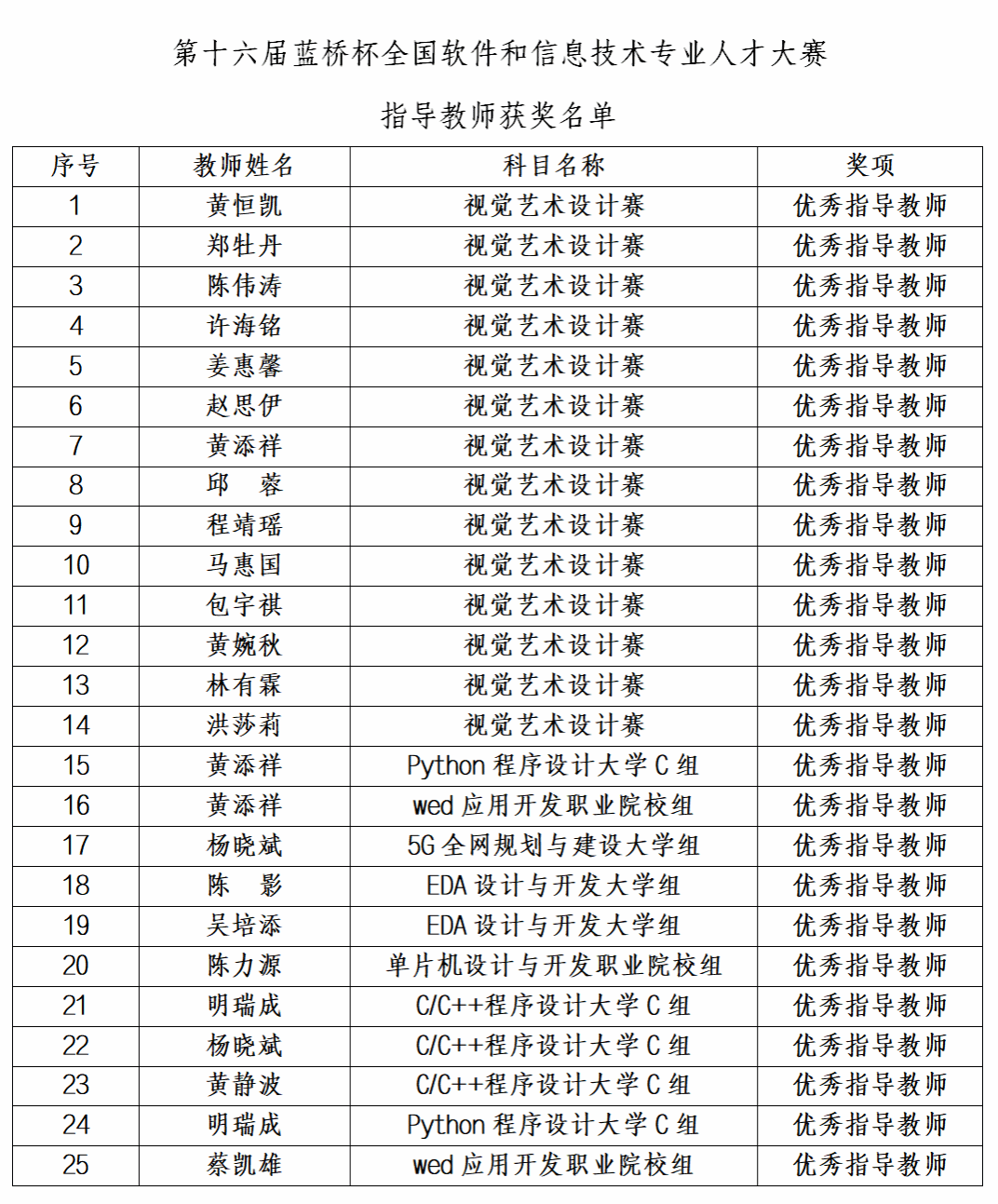 (获奖名单汇总)