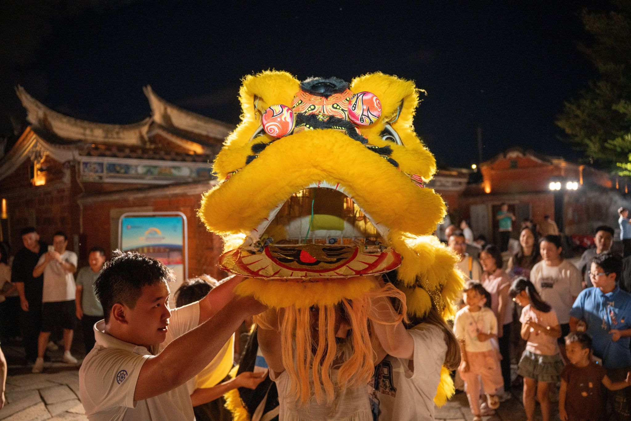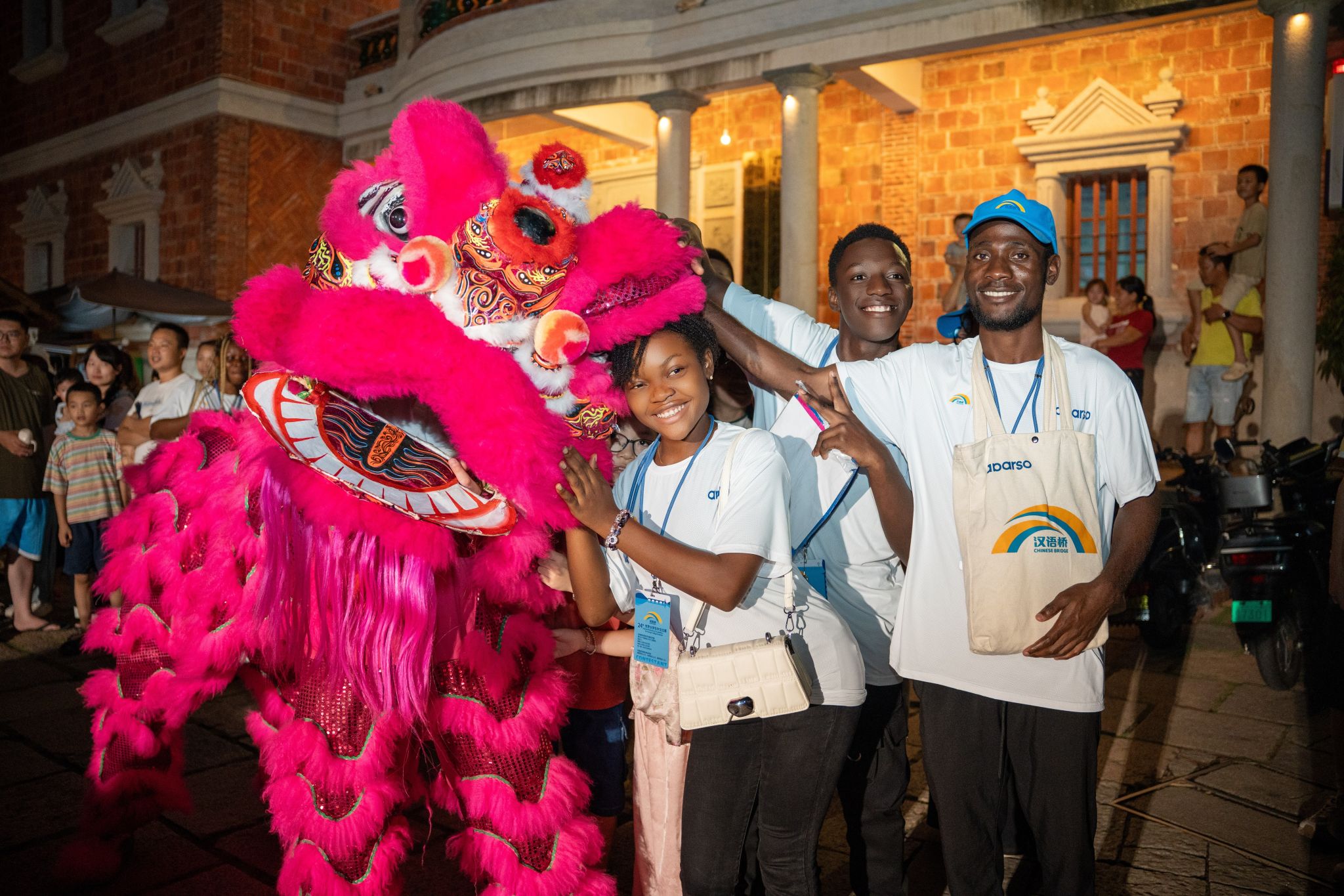 (新闻中心讯 校团委供稿 党委宣传部报道)8月14日,第二十四届“汉语桥”世界大学生中文比赛全球决赛选手走进晋江梧林传统村落。来自全球133个国家的155名选手共同在侨村感受中西方多元建筑融合特色,沉浸式体验闽南非遗以及中外大学生社团“夜市”。为让远道而来的国际友人感受中华传统文化的魅力,我校舞狮社受邀在古厝群落间献上精彩的醒狮表演,用灵动非遗技艺架起跨文化交流的桥梁。